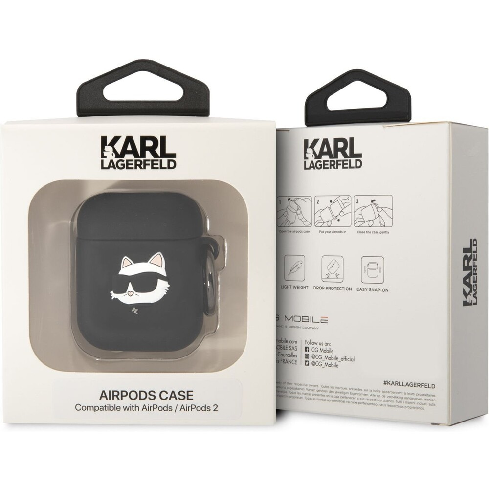 Karl Lagerfeld 3D Logo NFT Choupette Head Silikonové pouzdro Airpods 1/2 černé