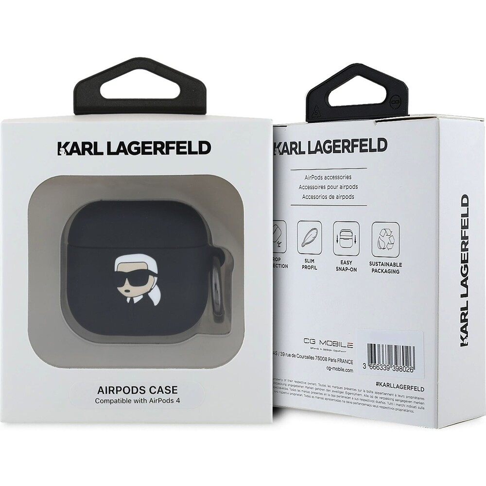 Karl Lagerfeld 3D Logo NFT Karl Head silikonové pouzdro AirPods 4 černé