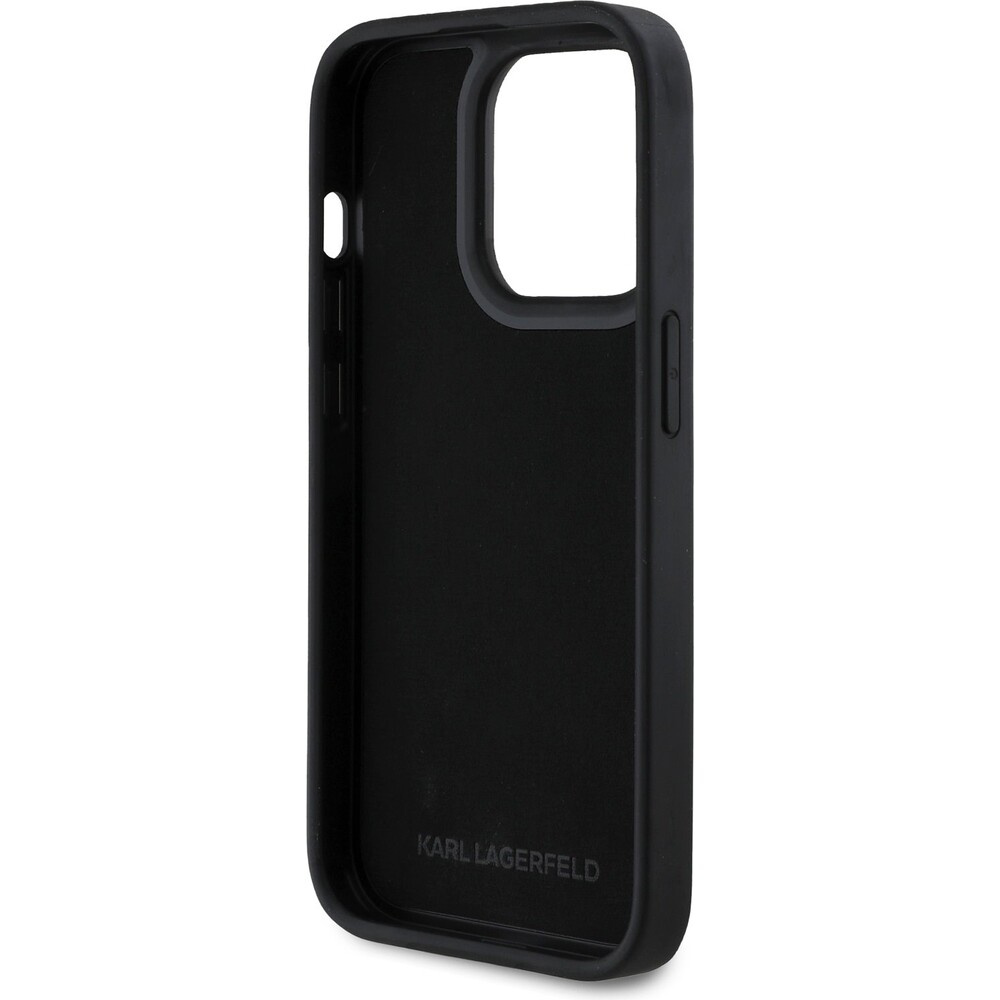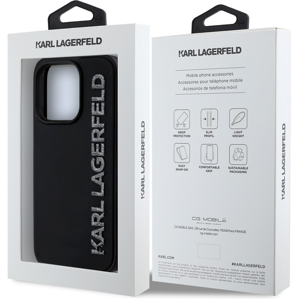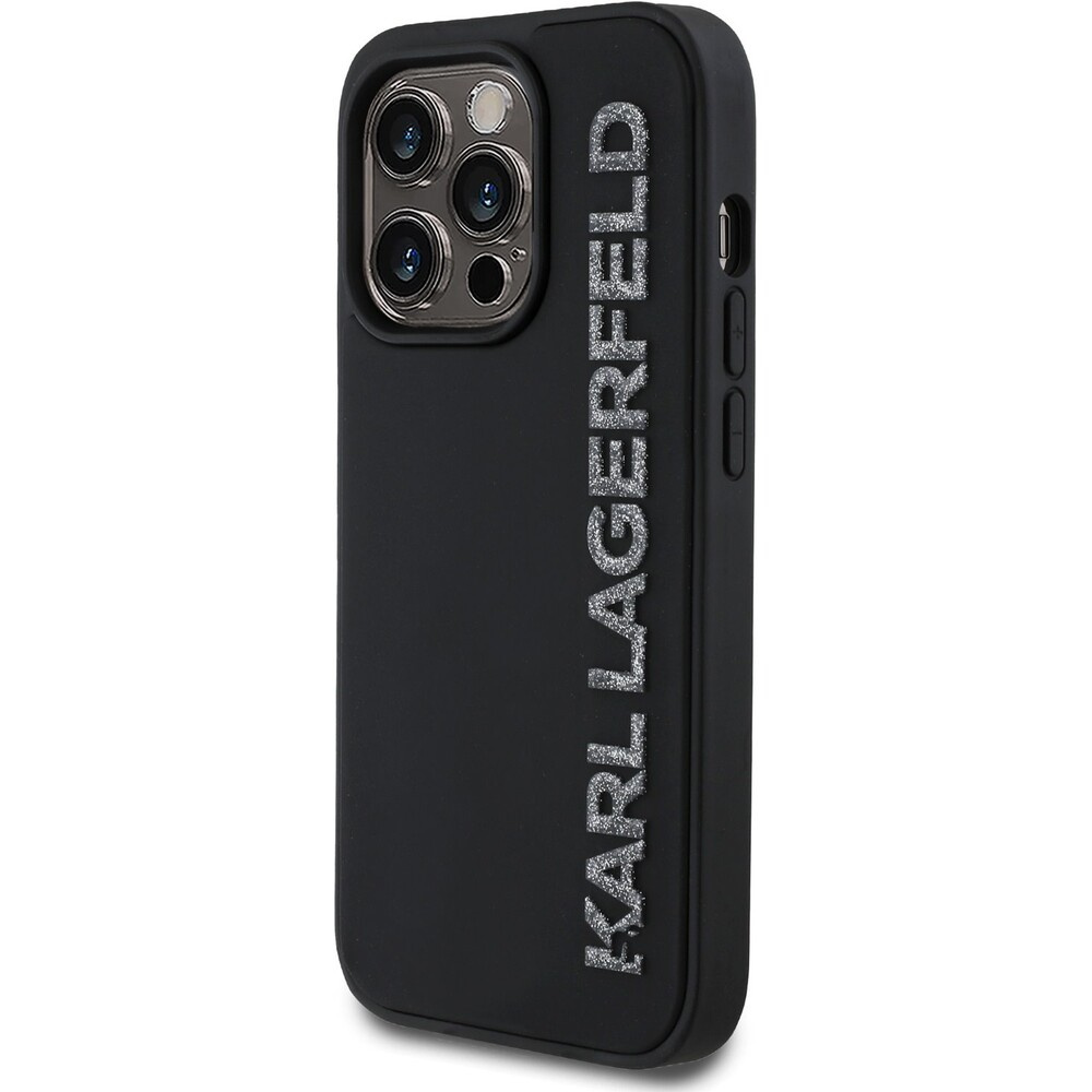 Karl Lagerfeld 3D Rubber Glitter Logo kryt iPhone 14 Pro černý