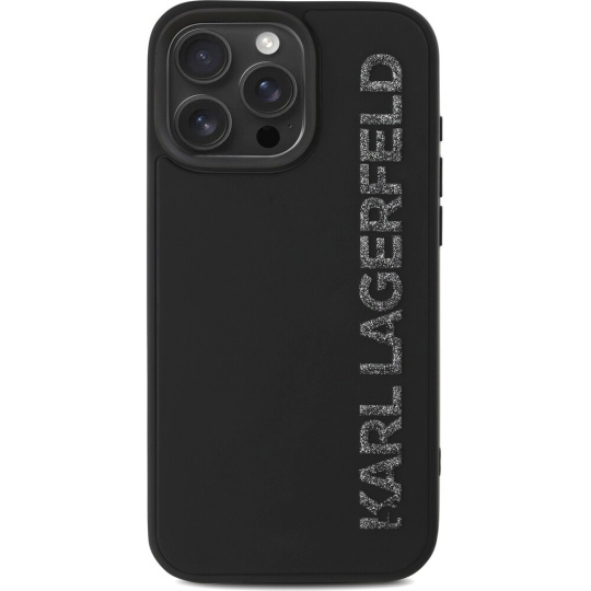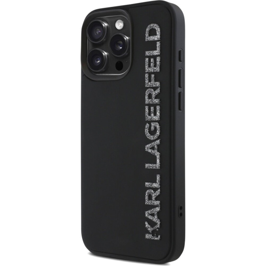 Karl Lagerfeld 3D Rubber Glitter Logo kryt iPhone 15 Pro černý
