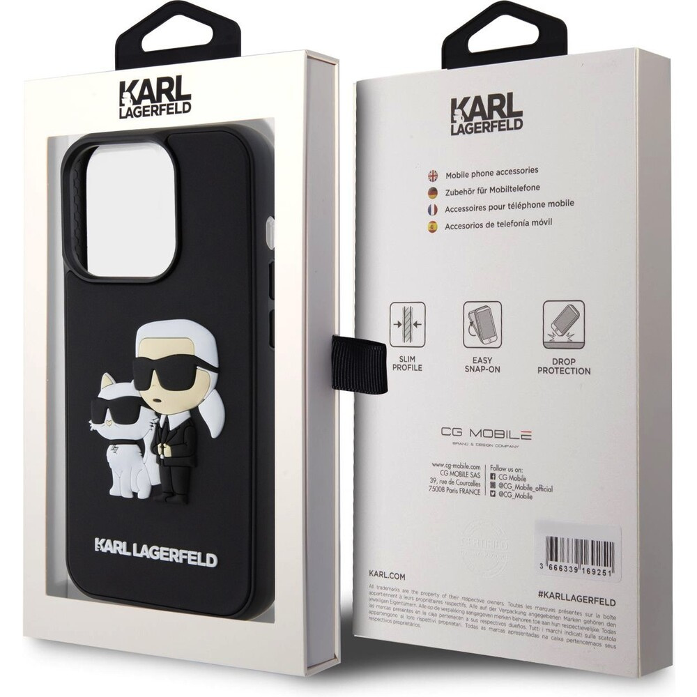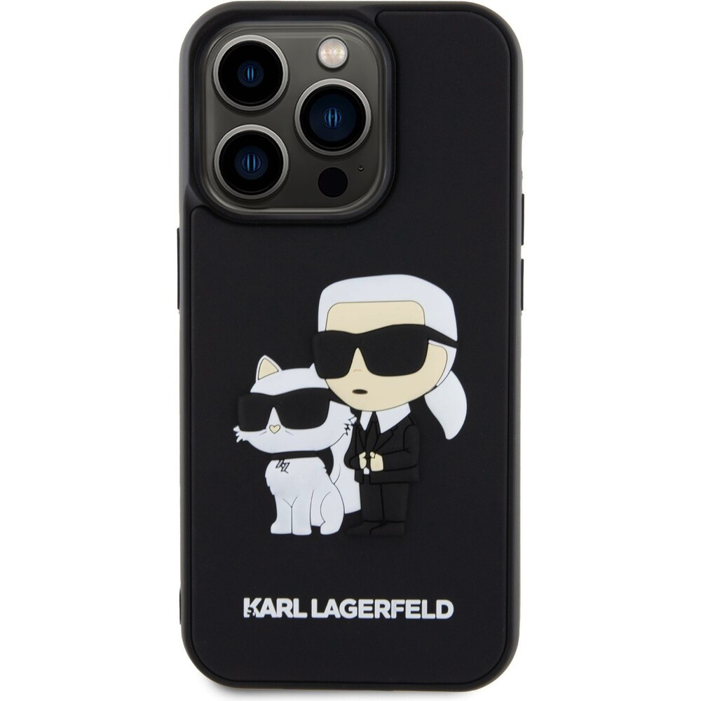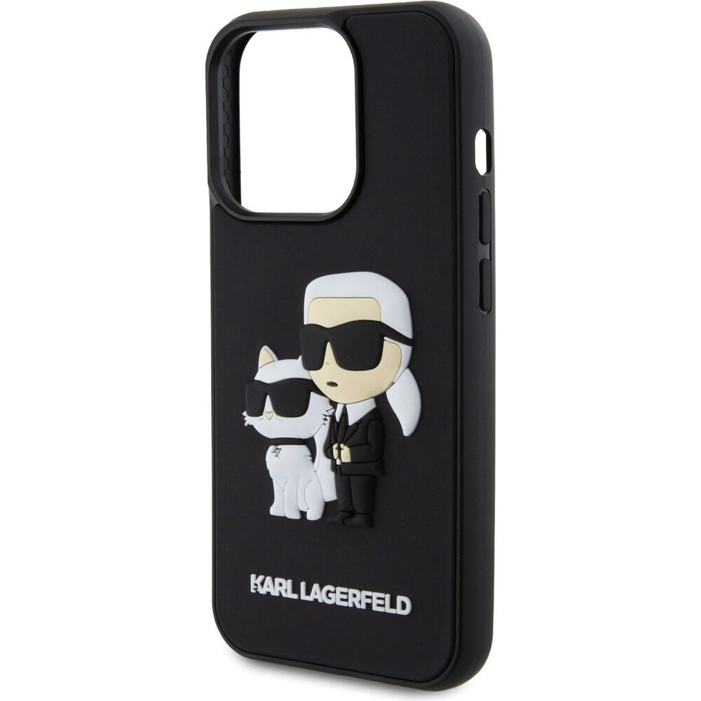 Karl Lagerfeld 3D Rubber Karl and Choupette kryt iPhone 15 Pro černý