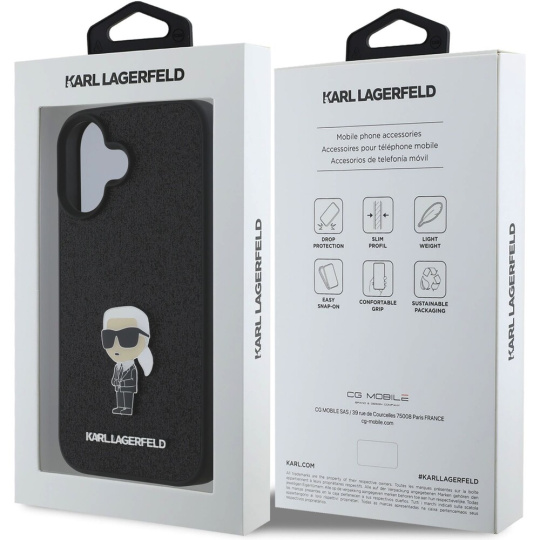 Karl Lagerfeld Fixed Glitter Metal Ikonik kryt pro iPhone 16 černý