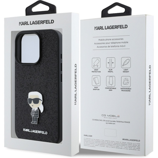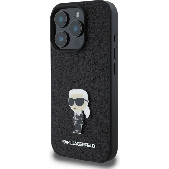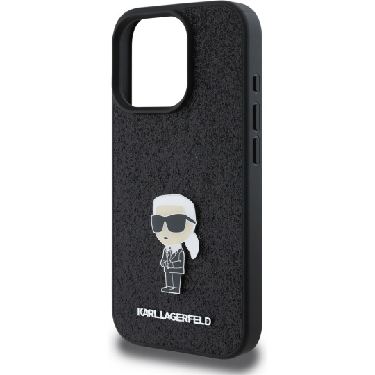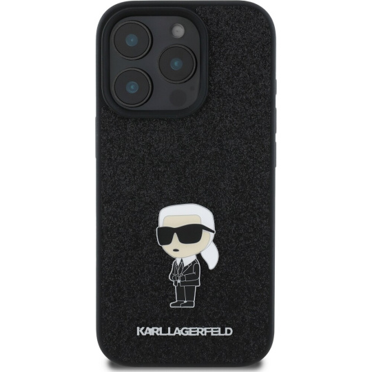 Karl Lagerfeld Fixed Glitter Metal Ikonik kryt pro iPhone 16 Pro černý
