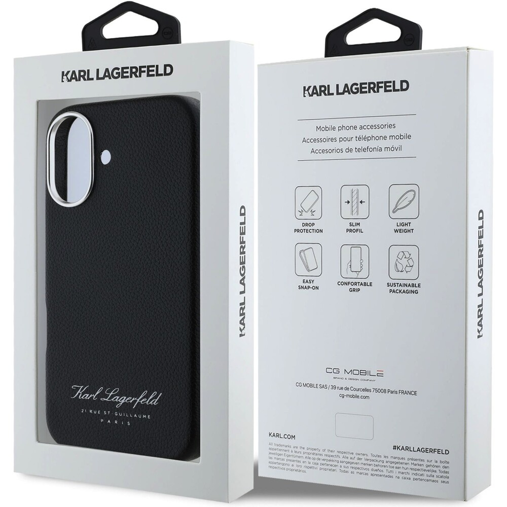 Karl Lagerfeld Grained PU Hotel RSG kryt pro iPhone 16 černý