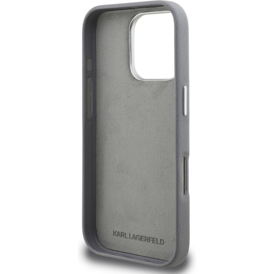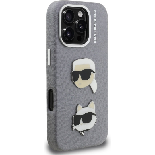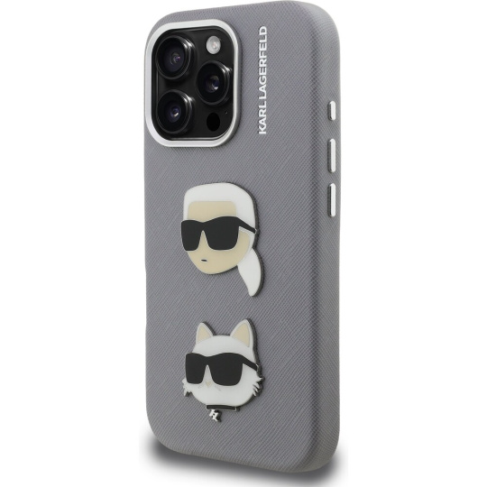 Karl Lagerfeld Grained PU K&CH Heads kryt iPhone 16 Pro šedý