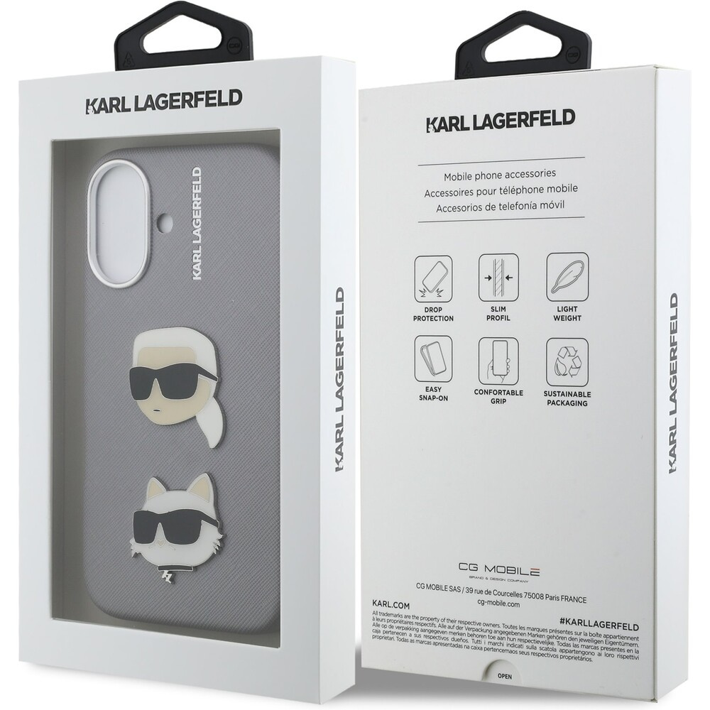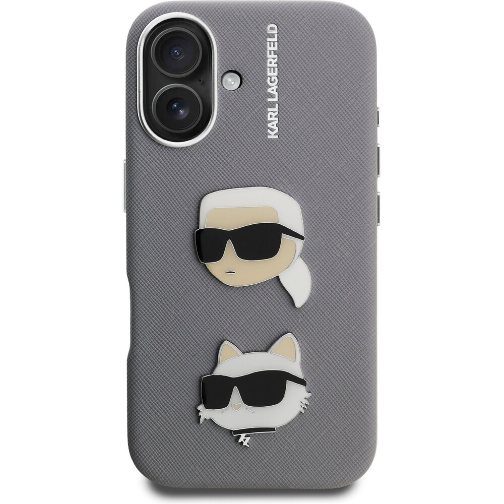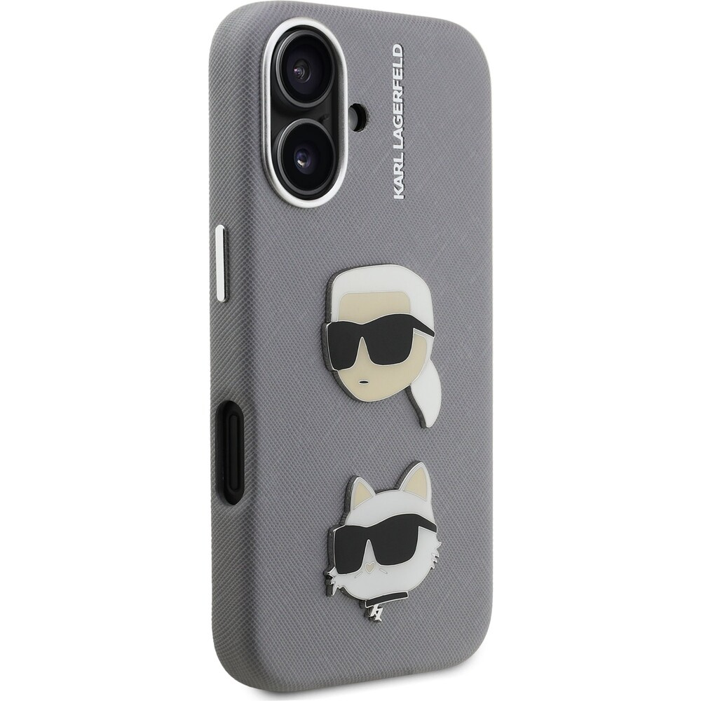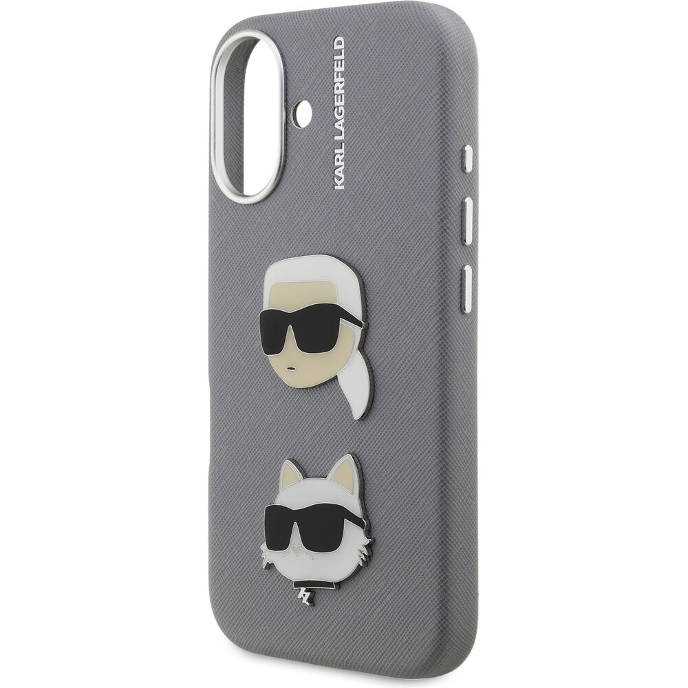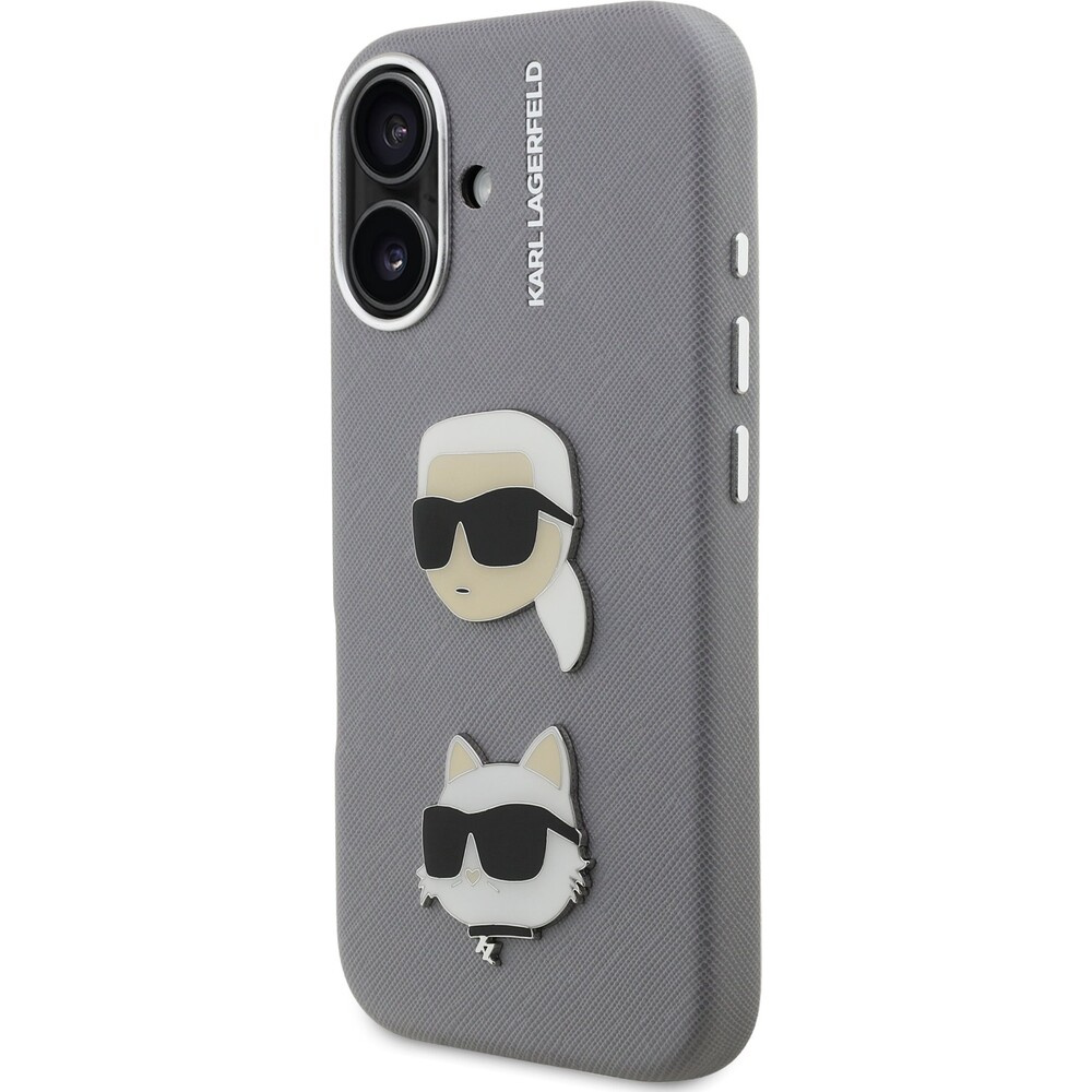 Karl Lagerfeld Grained PU K&CH Heads kryt iPhone 16 šedý
