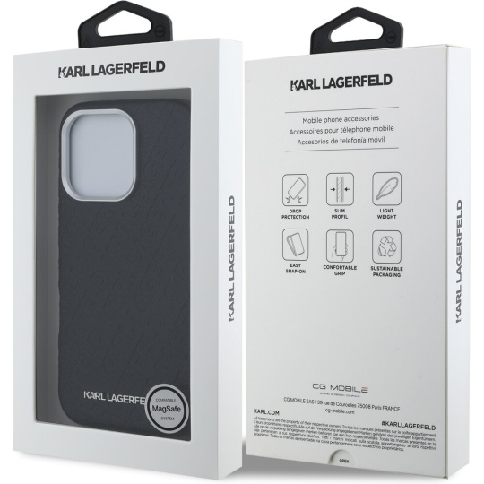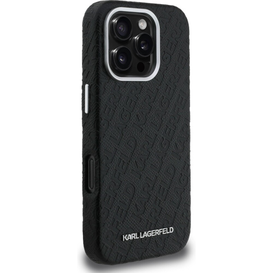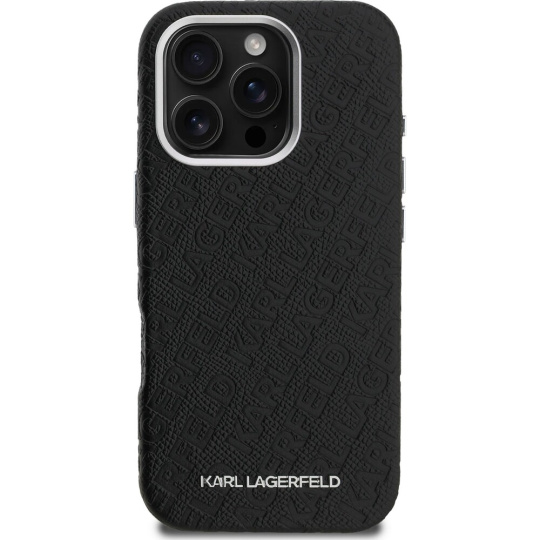 Karl Lagerfeld Grained PU Repeated Logo MagSafe kryt iPhone 16 Pro černý