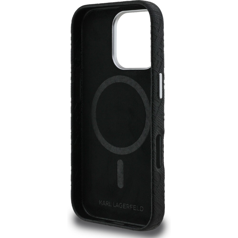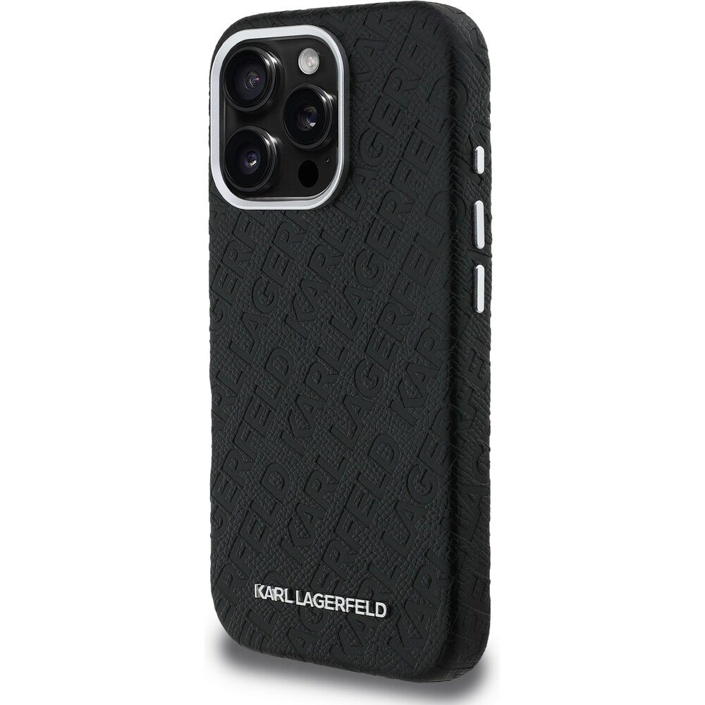 Karl Lagerfeld Grained PU Repeated Logo MagSafe kryt iPhone 16 Pro černý