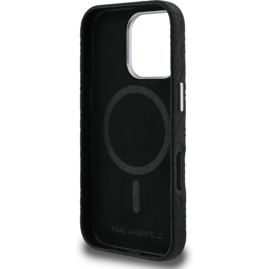 Karl Lagerfeld Grained PU Repeated Logo MagSafe kryt iPhone 16 Pro Max černý