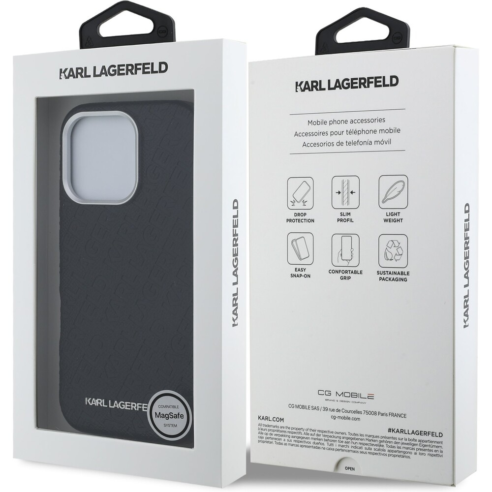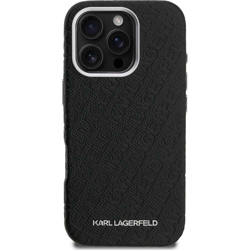 Karl Lagerfeld Grained PU Repeated Logo MagSafe kryt iPhone 16 Pro Max černý