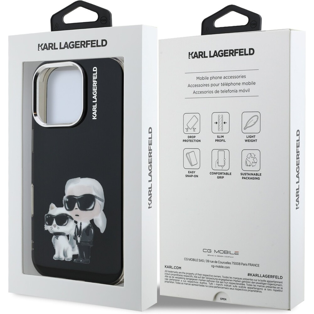 Karl Lagerfeld IML Aquarelle Karl and Choupette kryt iPhone 16 Pro Max černý