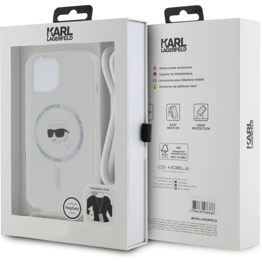 Karl Lagerfeld IML Crossbody Karl Head Magsafe zadní kryt iPhone 15 čirý