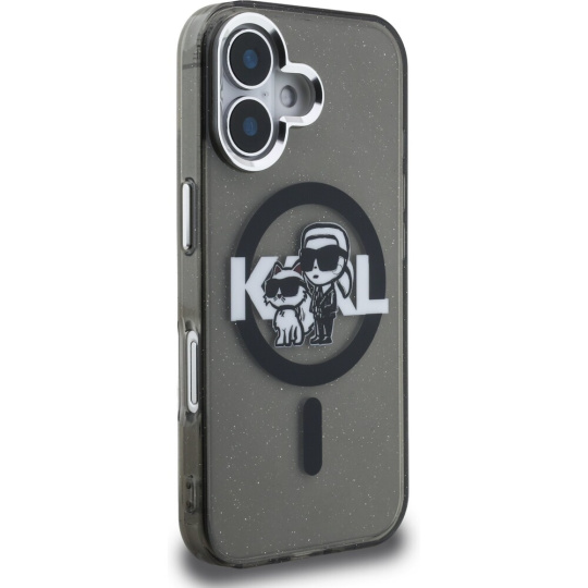 Karl Lagerfeld IML Glitter Karl and Choupette Sketch MagSafe kryt iPhone 16 černý