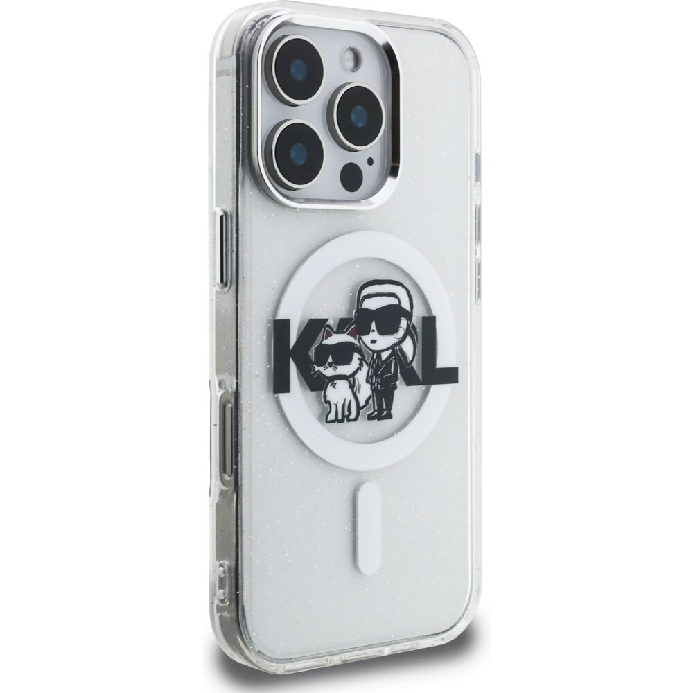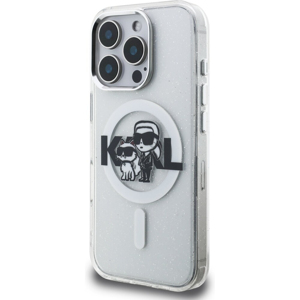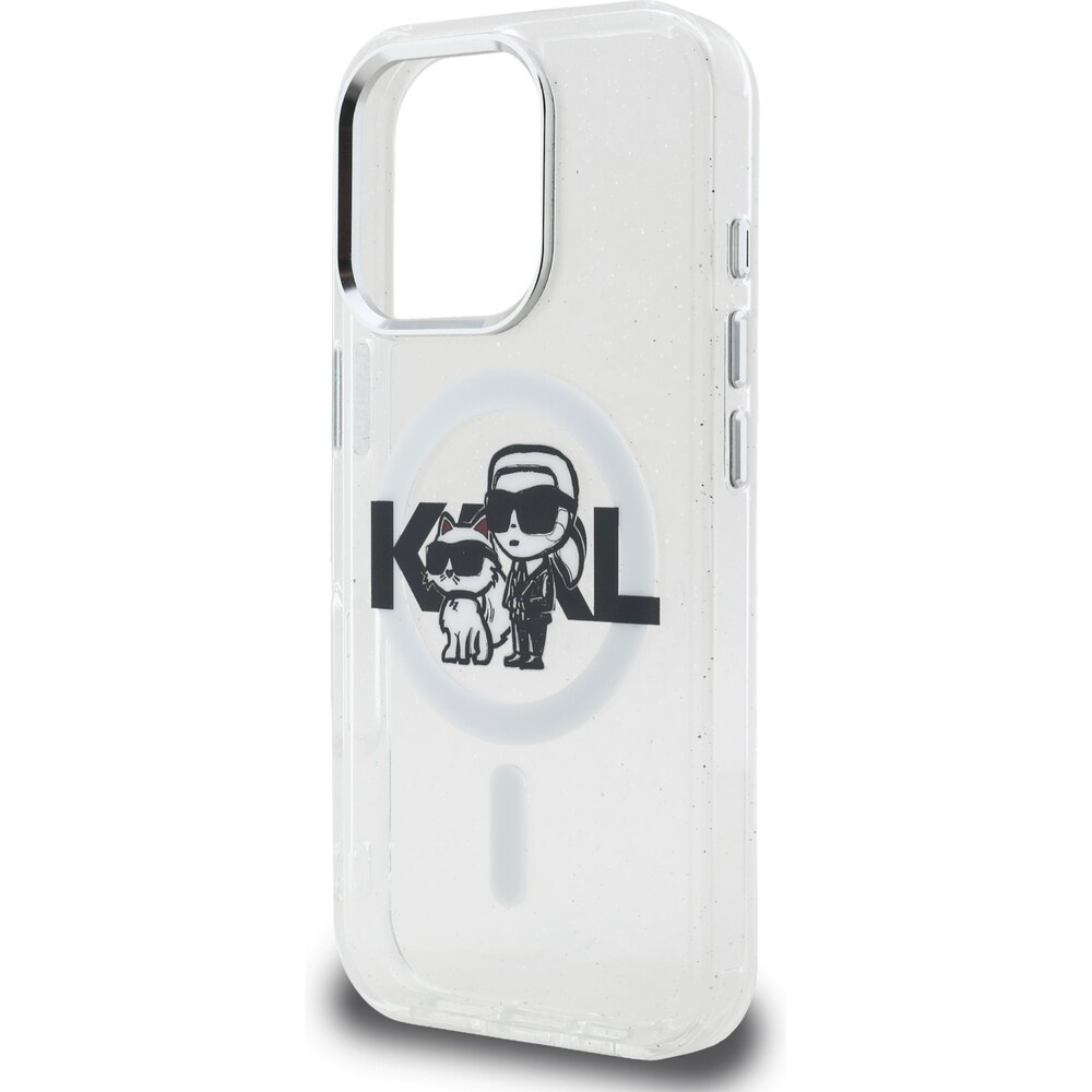Karl Lagerfeld IML Glitter Karl and Choupette Sketch MagSafe kryt iPhone 16 Pro čirý
