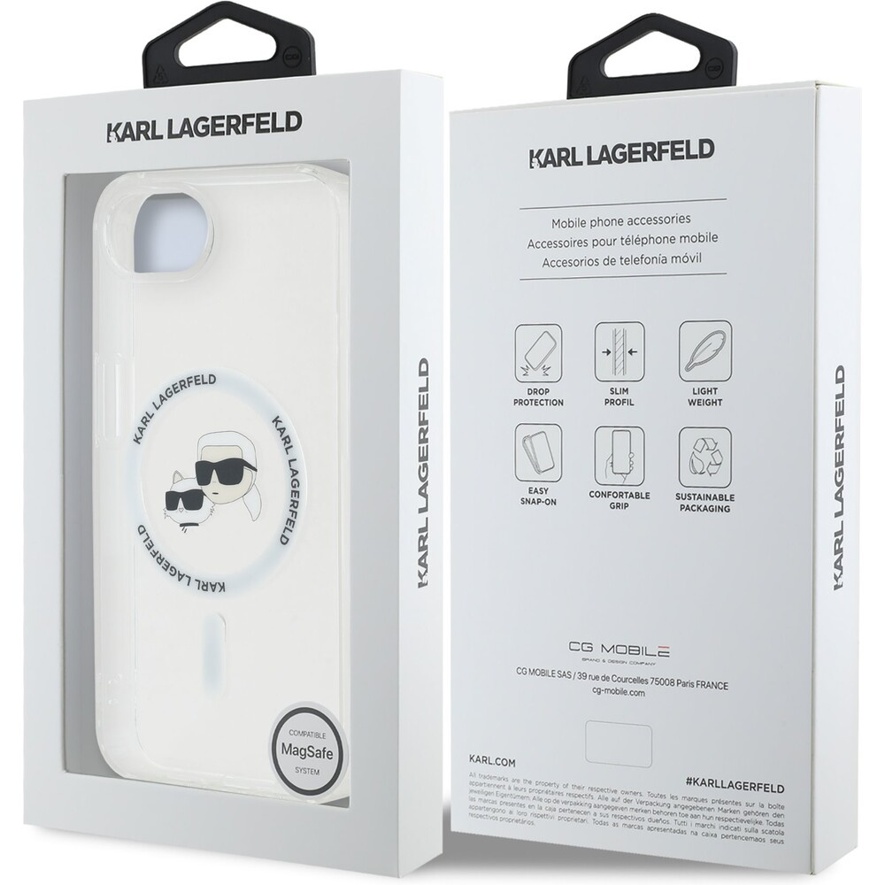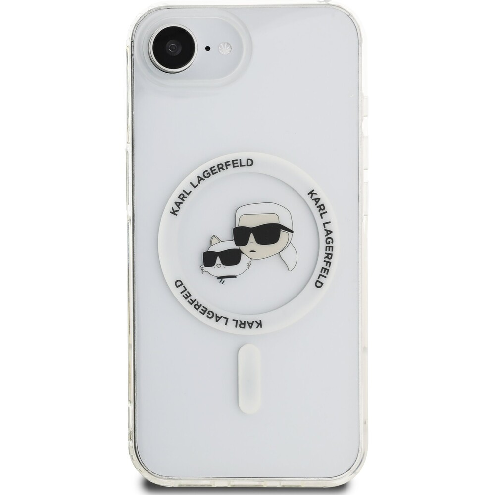 Karl Lagerfeld IML K&CH Heads Metal Frame MagSafe kryt iPhone 16e čirý