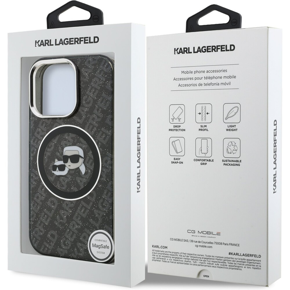 Karl Lagerfeld IML K&CH Heads Repeated Logo MagSafe kryt iPhone 15 Pro černý