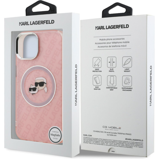Karl Lagerfeld IML K&CH Heads Repeated Logo MagSafe kryt iPhone 15 růžový