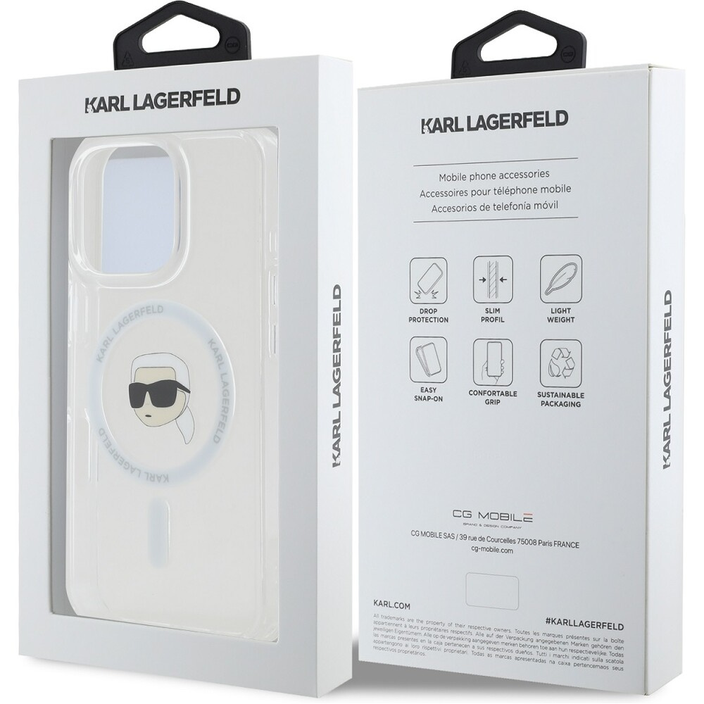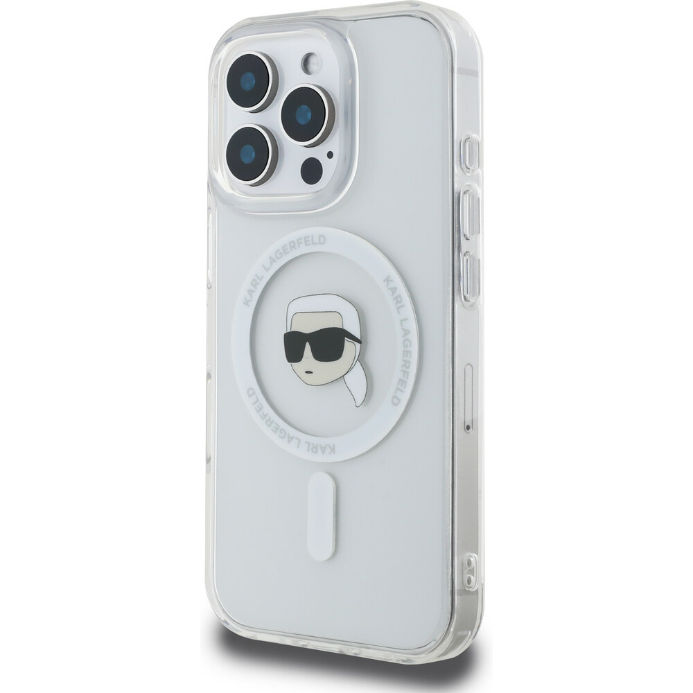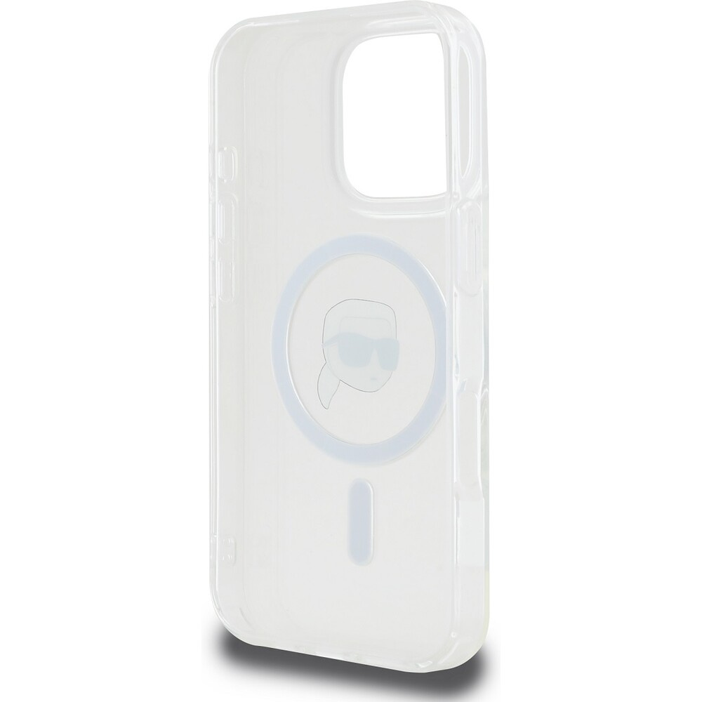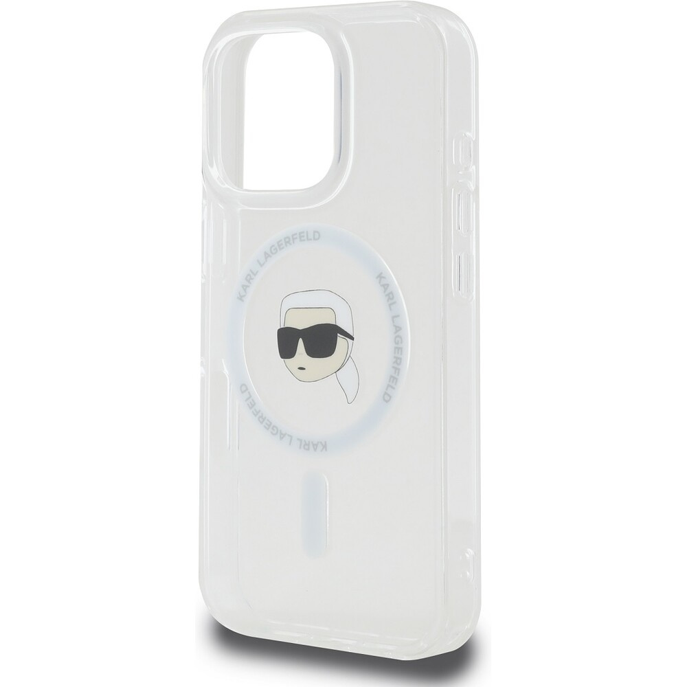 Karl Lagerfeld IML Karl Head Metal Frame MagSafe kryt pro iPhone 16 Pro Max čirý