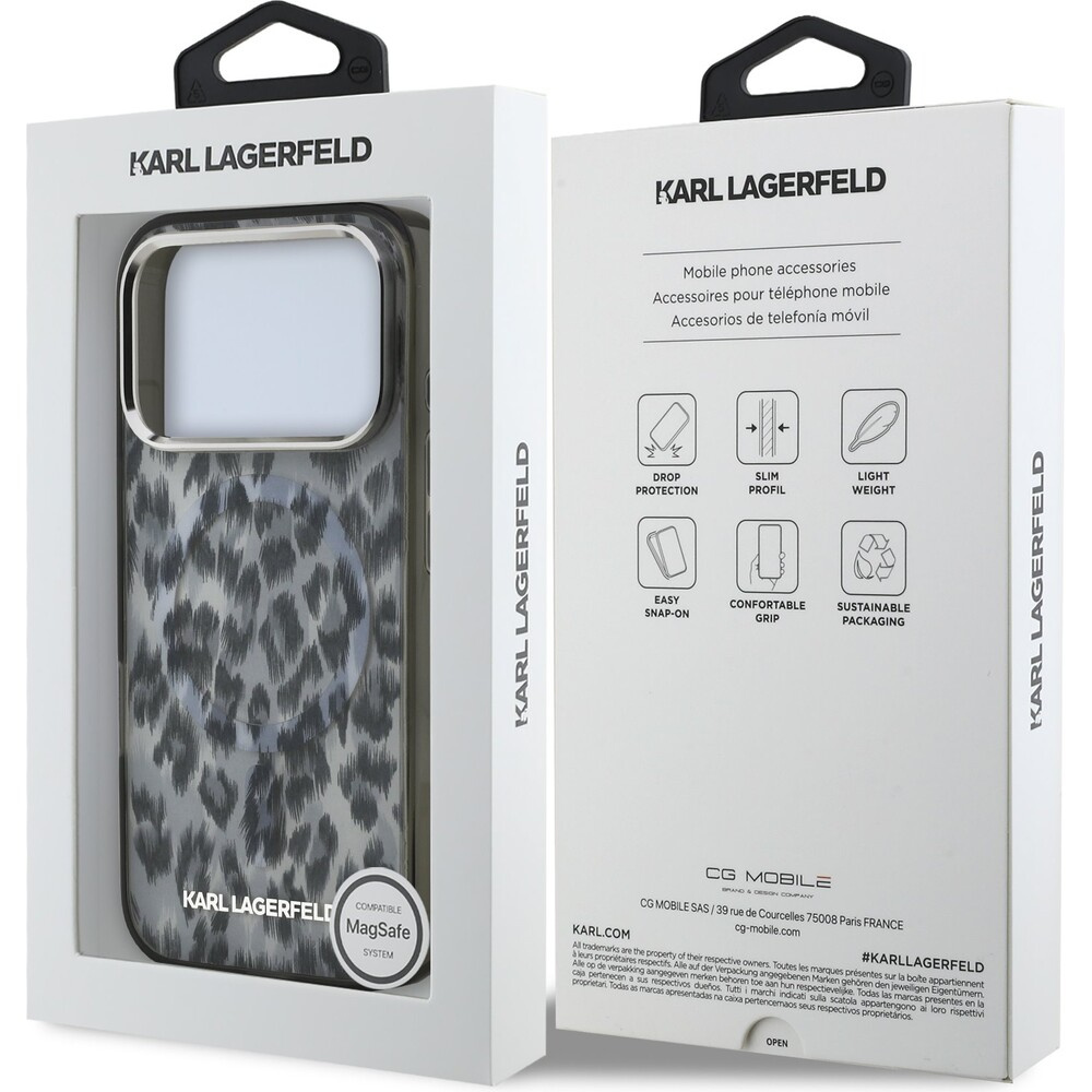 Karl Lagerfeld IML Leopard MagSafe Zadní Kryt pro iPhone 17 Pro šedý
