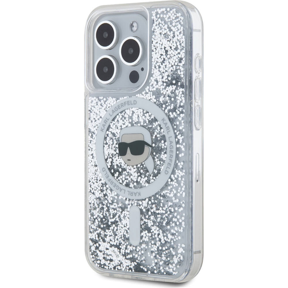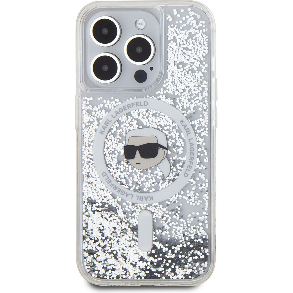 Karl Lagerfeld Liquid Glitter Karl Head MagSafe zadní kryt pro iPhone 15 Pro Max čirý