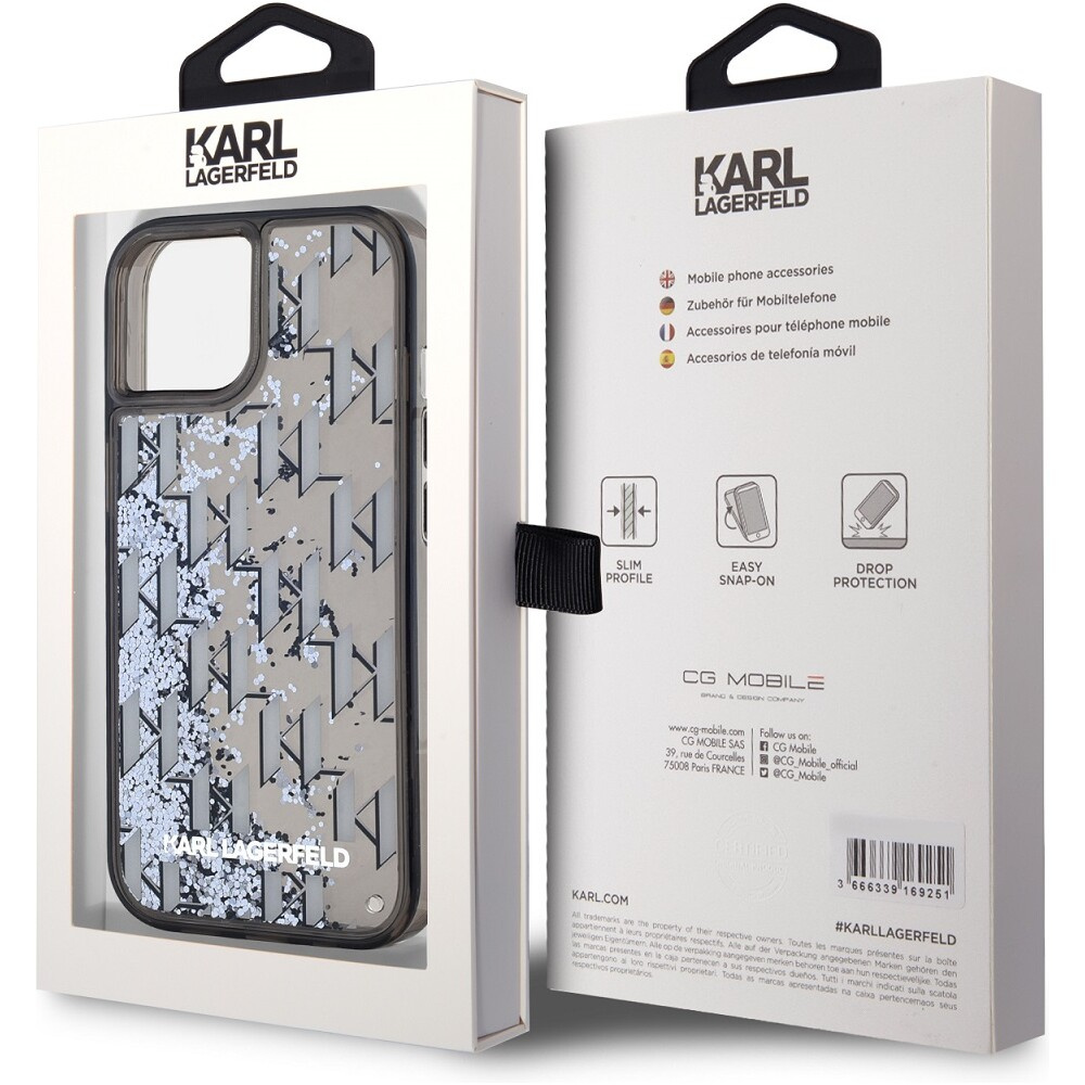 Karl Lagerfeld Liquid Glitter Monogram Gradient zadní kryt iPhone 15 černý