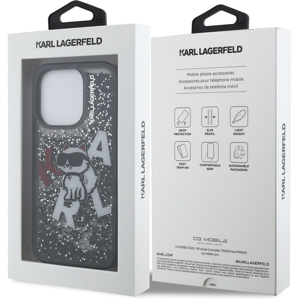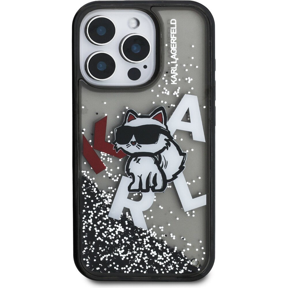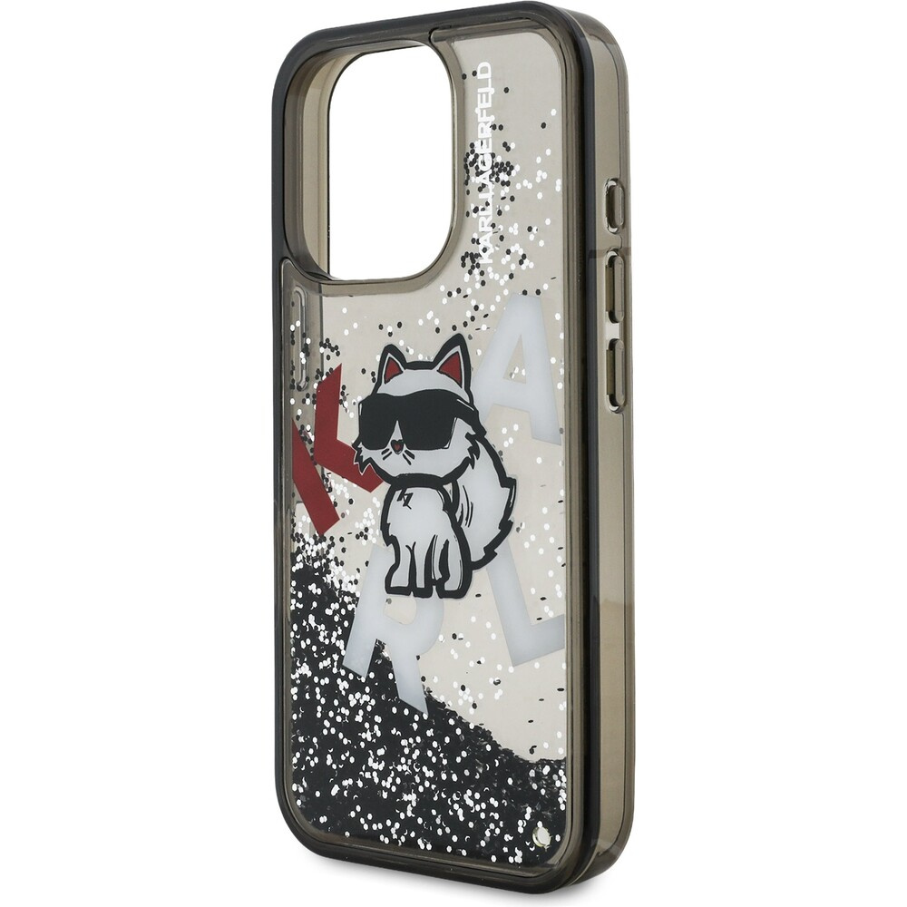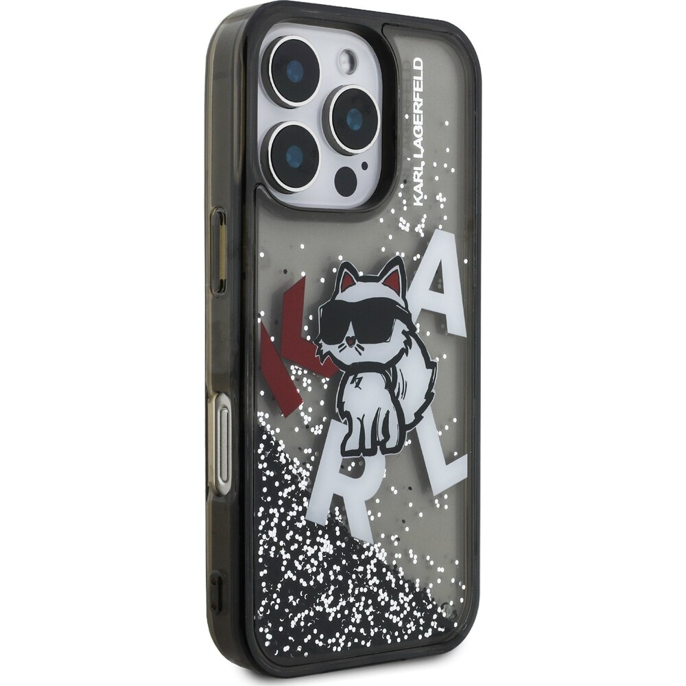 Karl Lagerfeld Liquid Glitter Scattered Choupette kryt iPhone 16 Pro černý