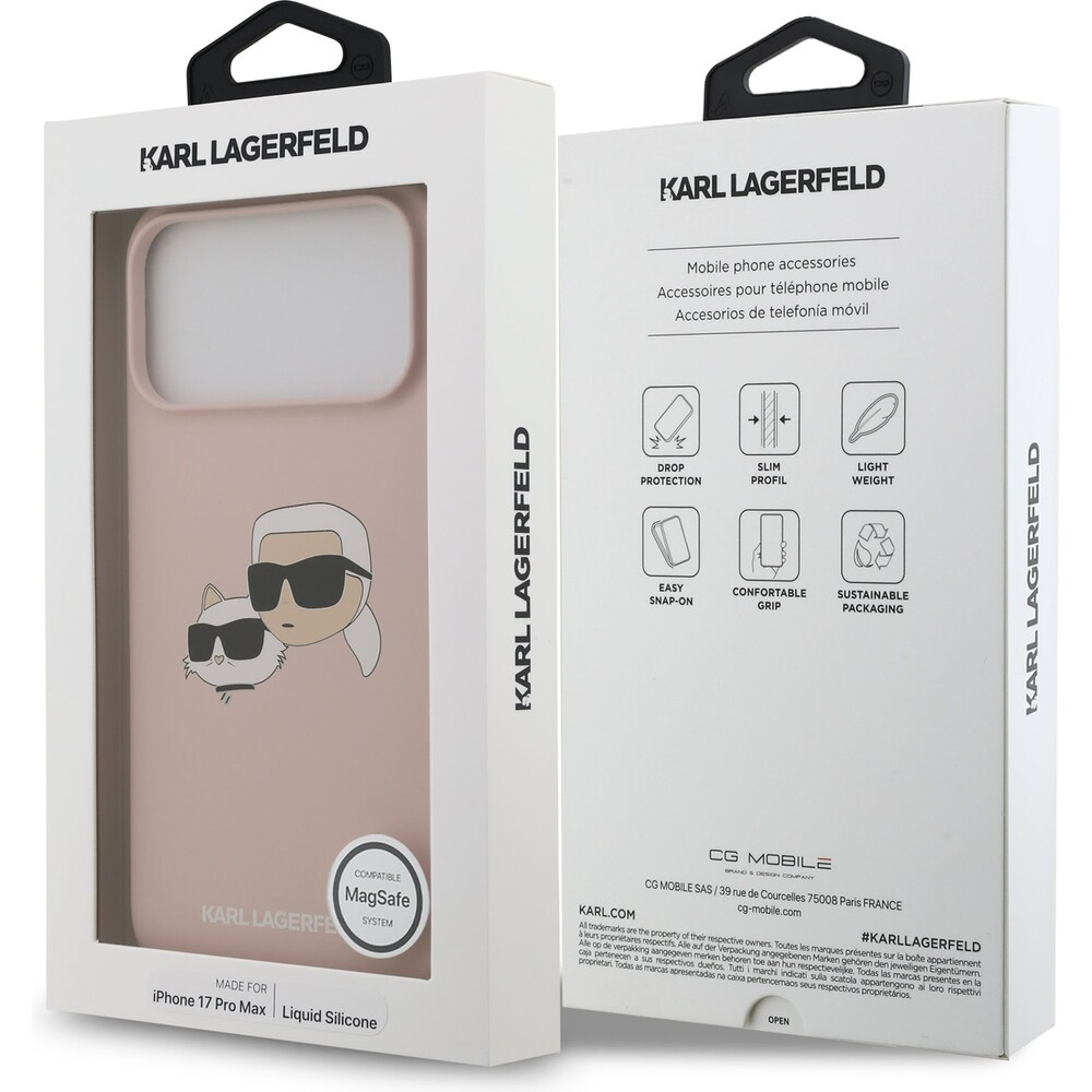 Karl Lagerfeld Liquid Silicone Double Heads MagSafe kryt iPhone 17 Pro Max růžový