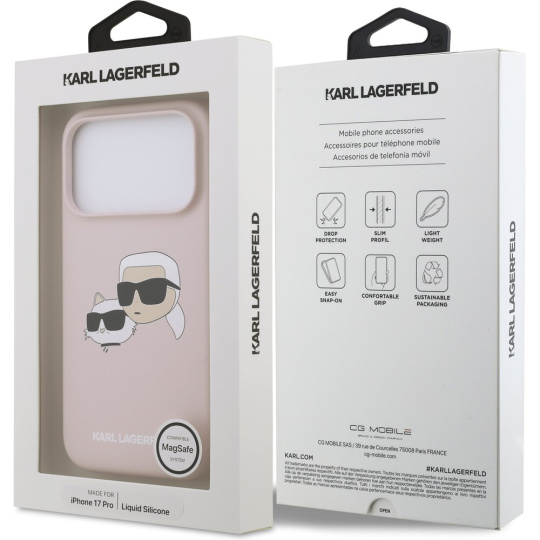 Karl Lagerfeld Liquid Silicone Double Heads MagSafe kryt iPhone 17 Pro růžový
