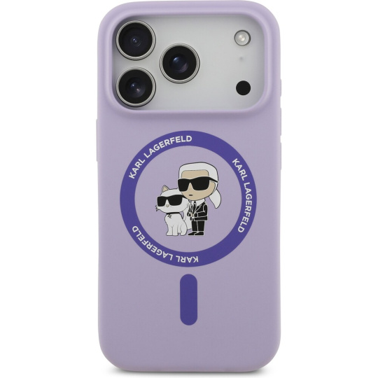Karl Lagerfeld Liquid Silicone Karl and Choupette MagSafe kryt iPhone 17 Pro fialový