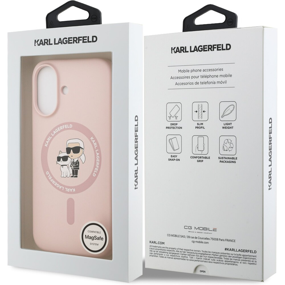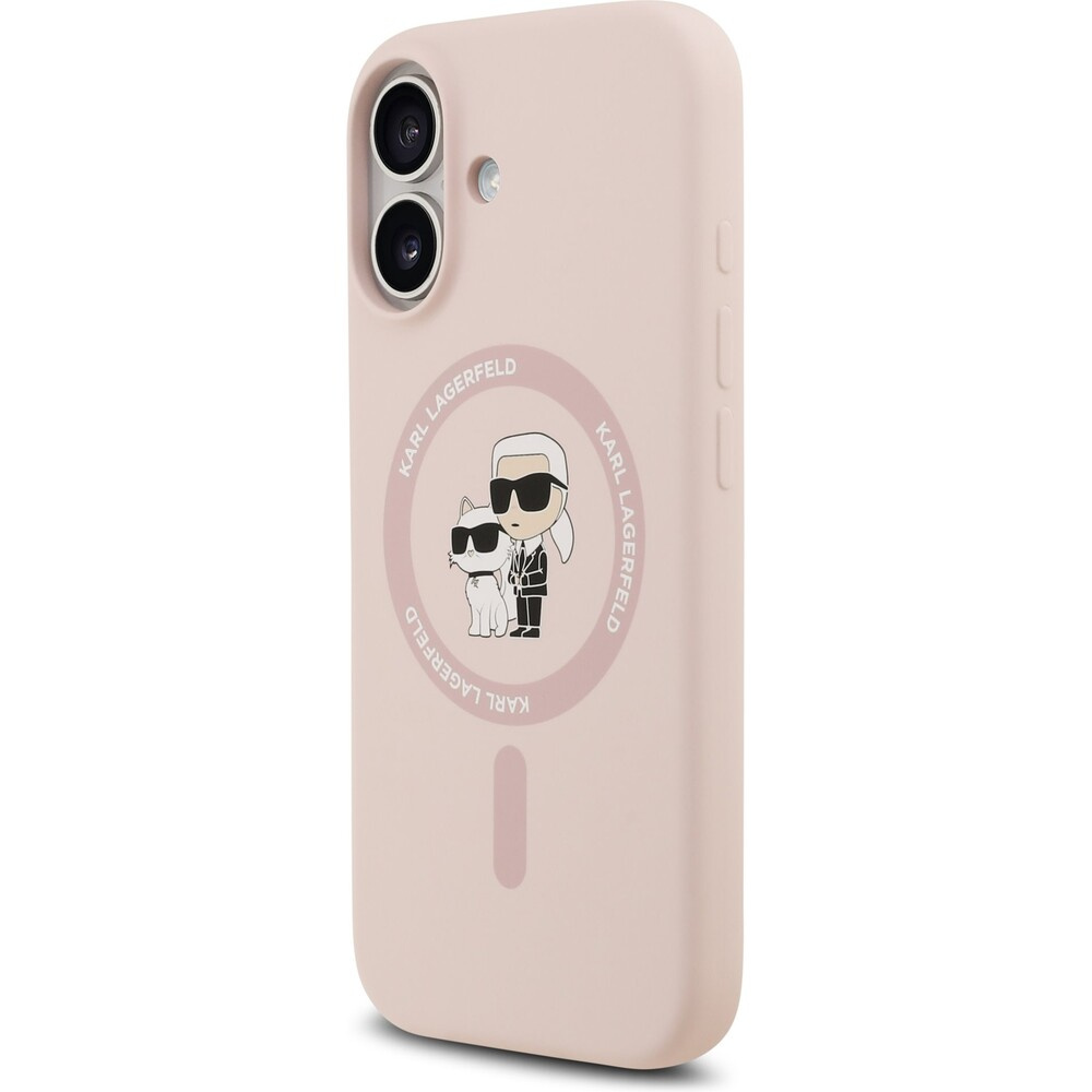 Karl Lagerfeld Liquid Silicone Karl and Choupette MagSafe kryt iPhone 17 růžový