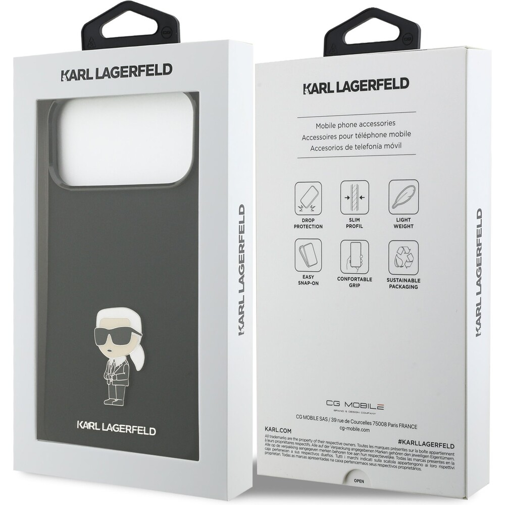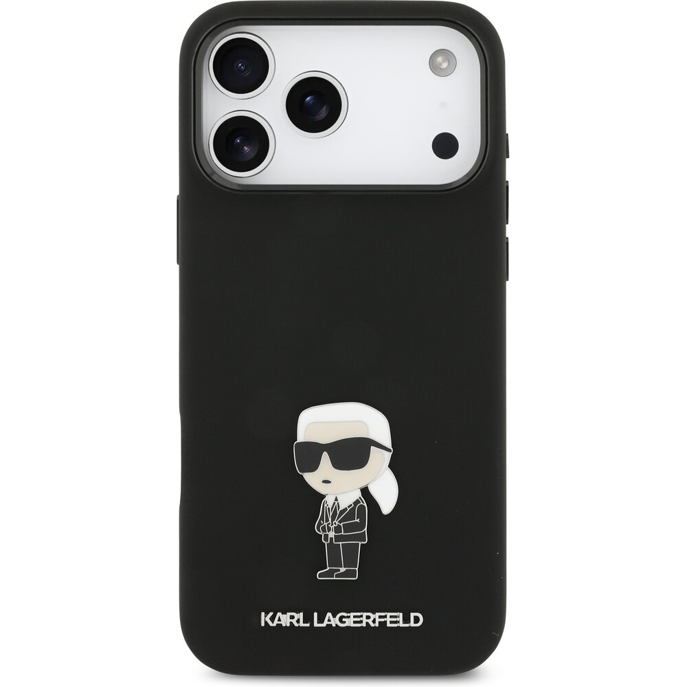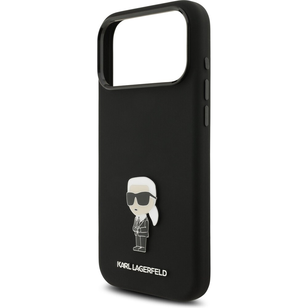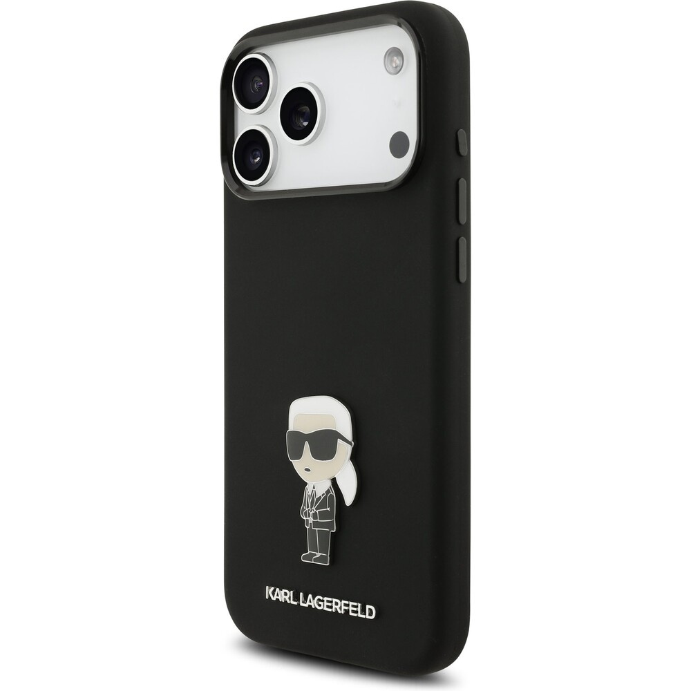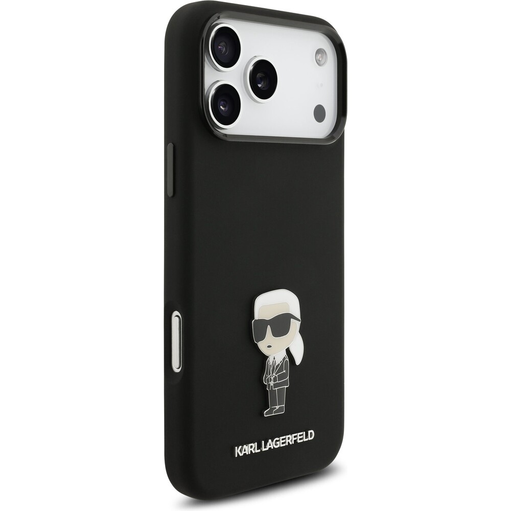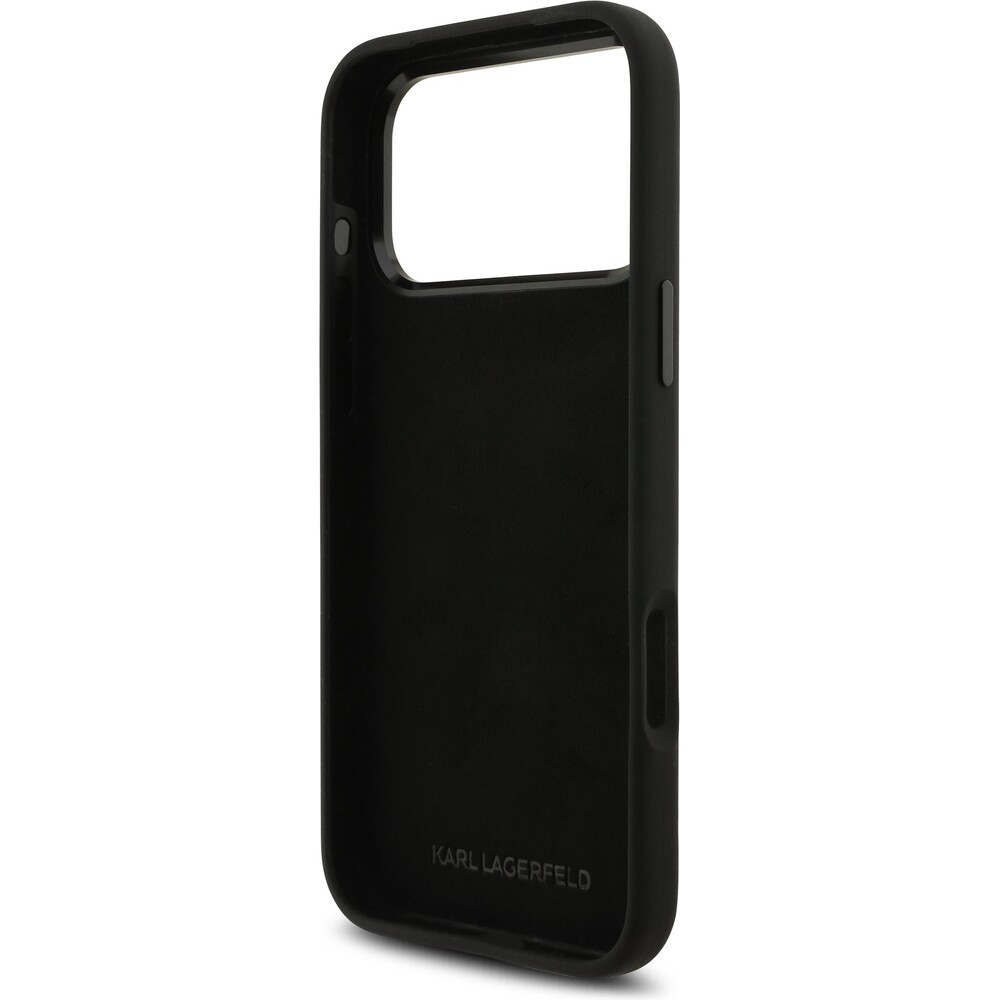 Karl Lagerfeld Liquid Silicone Metal Ikonik kryt iPhone 17 Pro Max černý