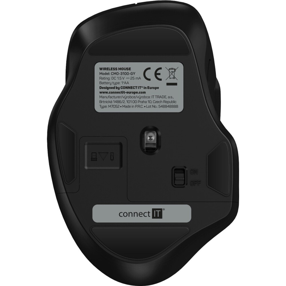 CONNECT IT Dual SmartSwitch bezdrátová myš, USB-A + C (+1x AA baterie zdarma) šedá