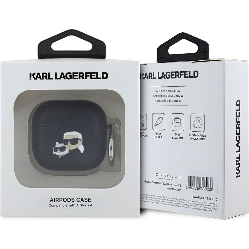 Karl Lagerfeld PU Embossed Karl and Choupette Heads pouzdro AirPods 4 černé