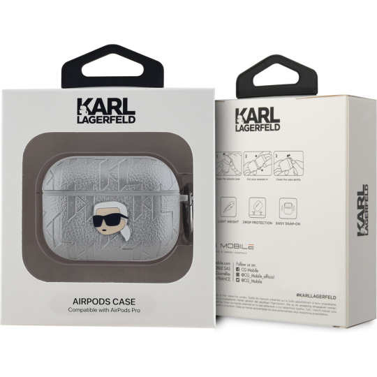 Karl Lagerfeld PU Embossed Karl Head pouzdro AirPods Pro stříbrné