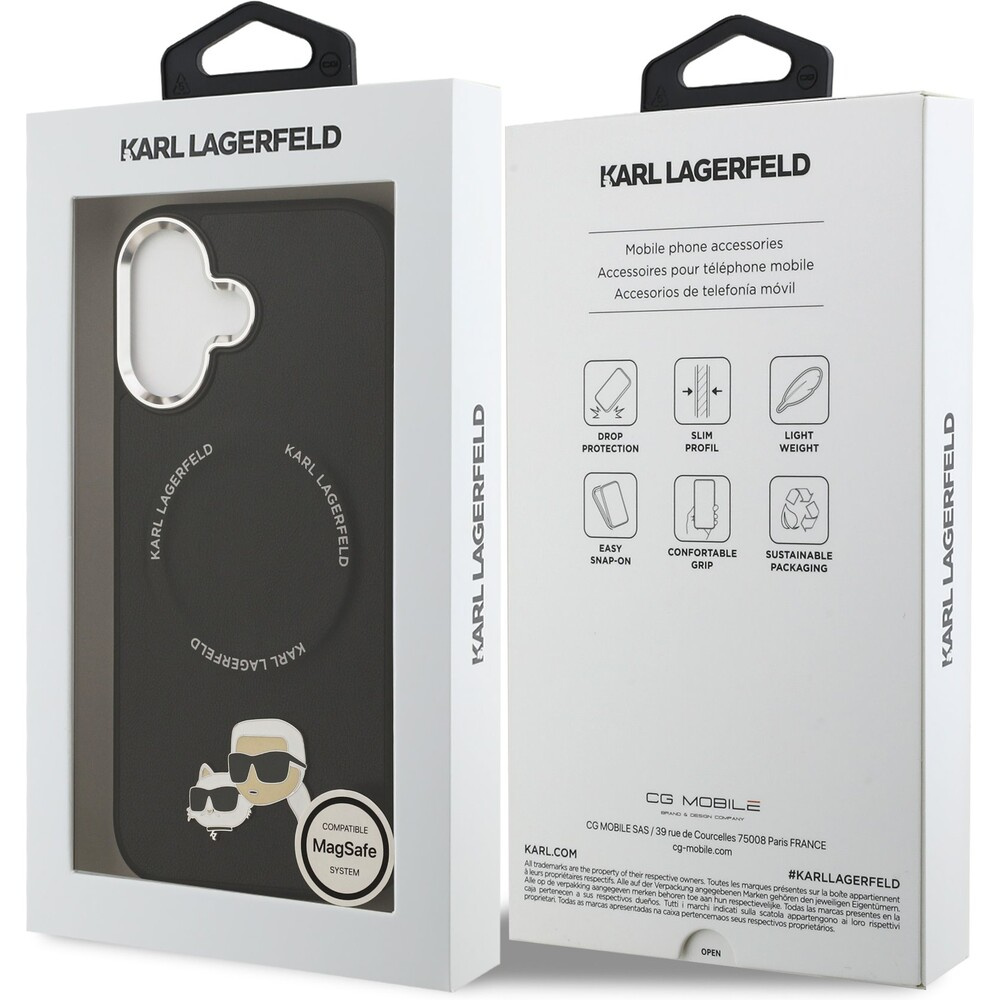 Karl Lagerfeld PU Karl and Choupette Heads Pins MagSafe kryt iPhone 17 černý