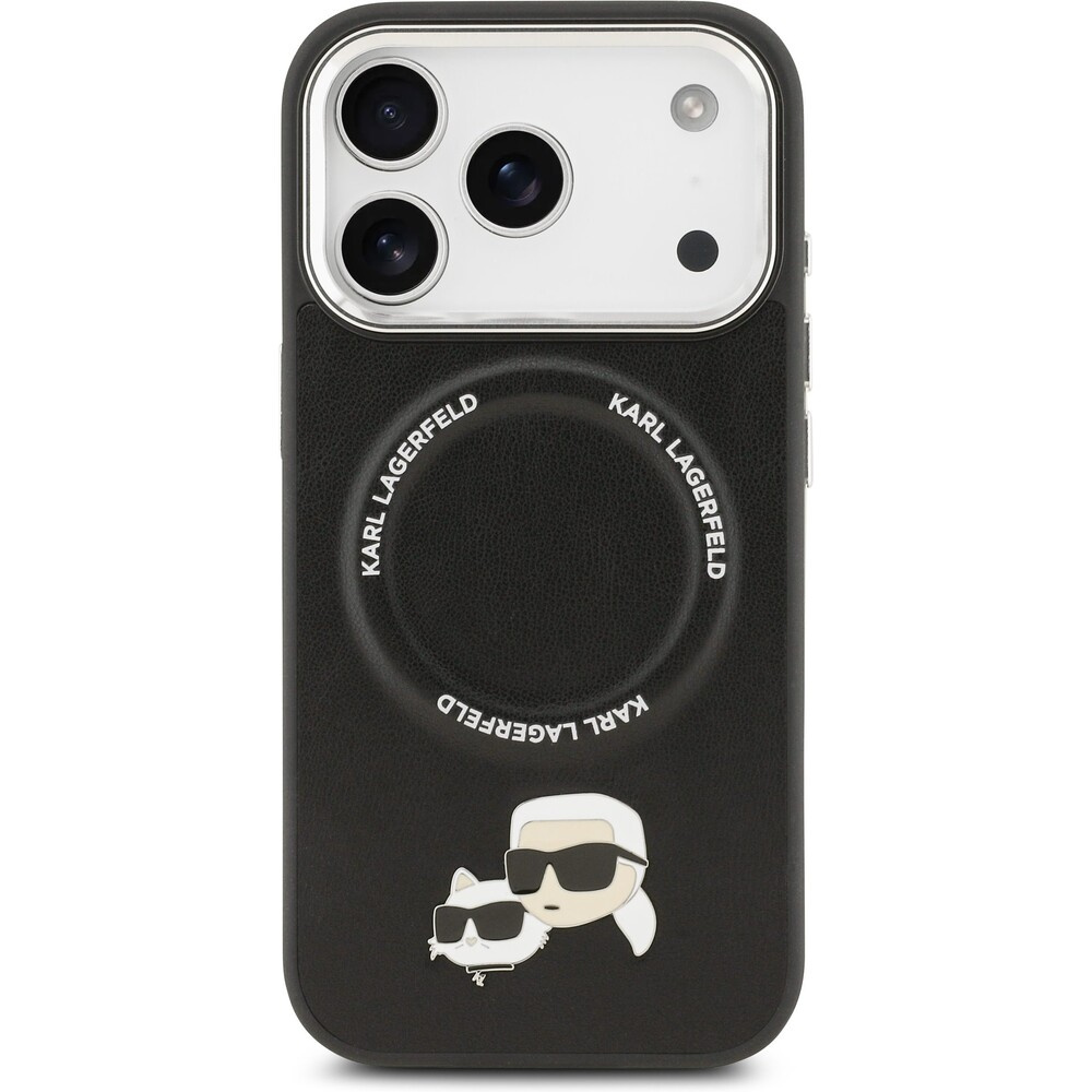 Karl Lagerfeld PU Karl and Choupette Heads Pins MagSafe kryt iPhone 17 Pro černý