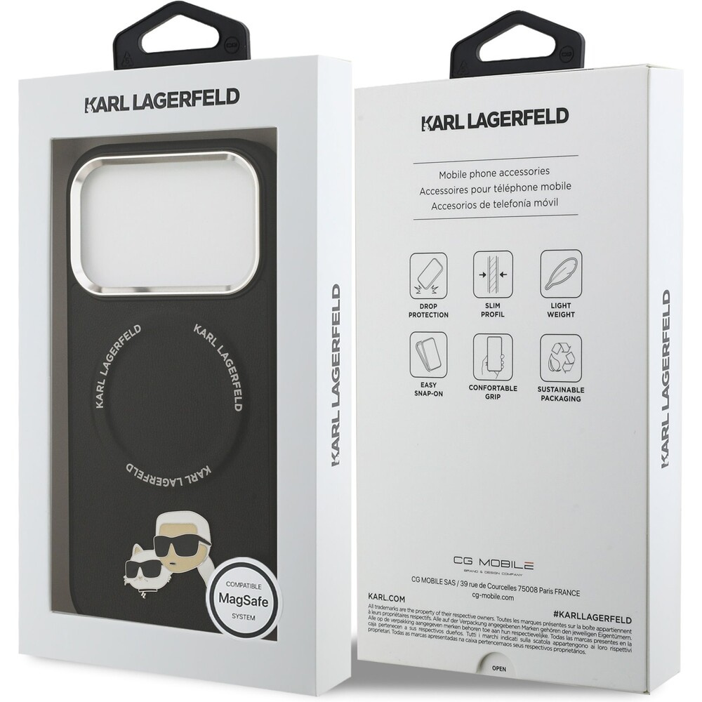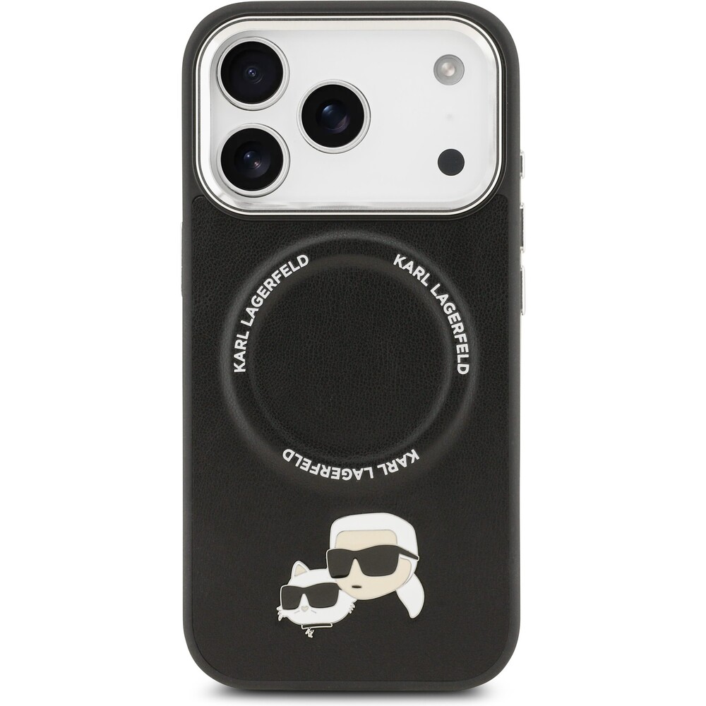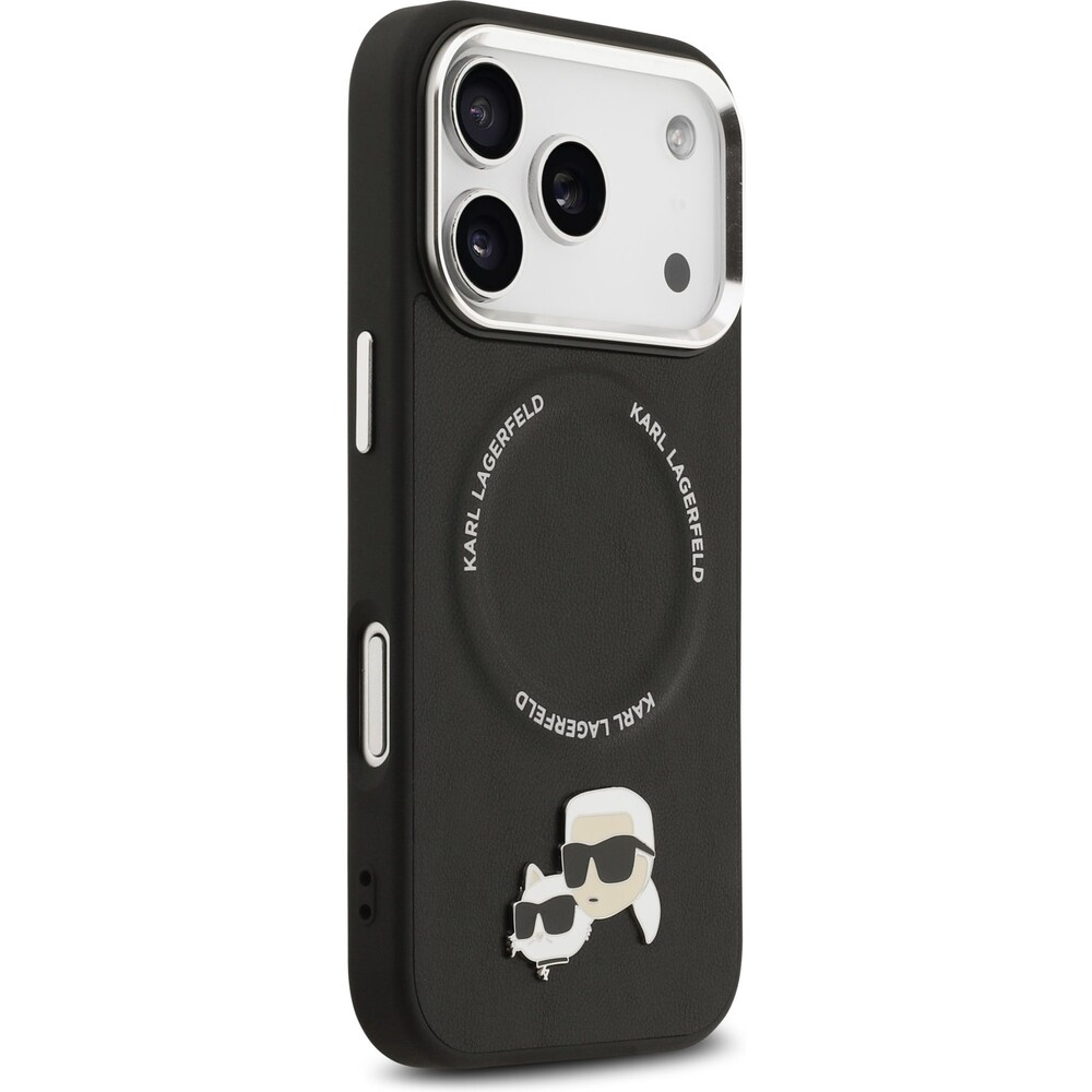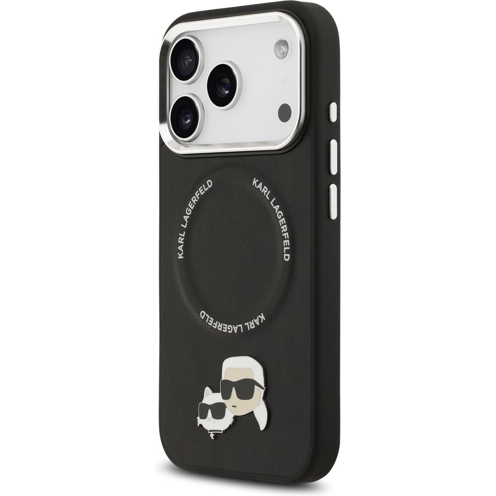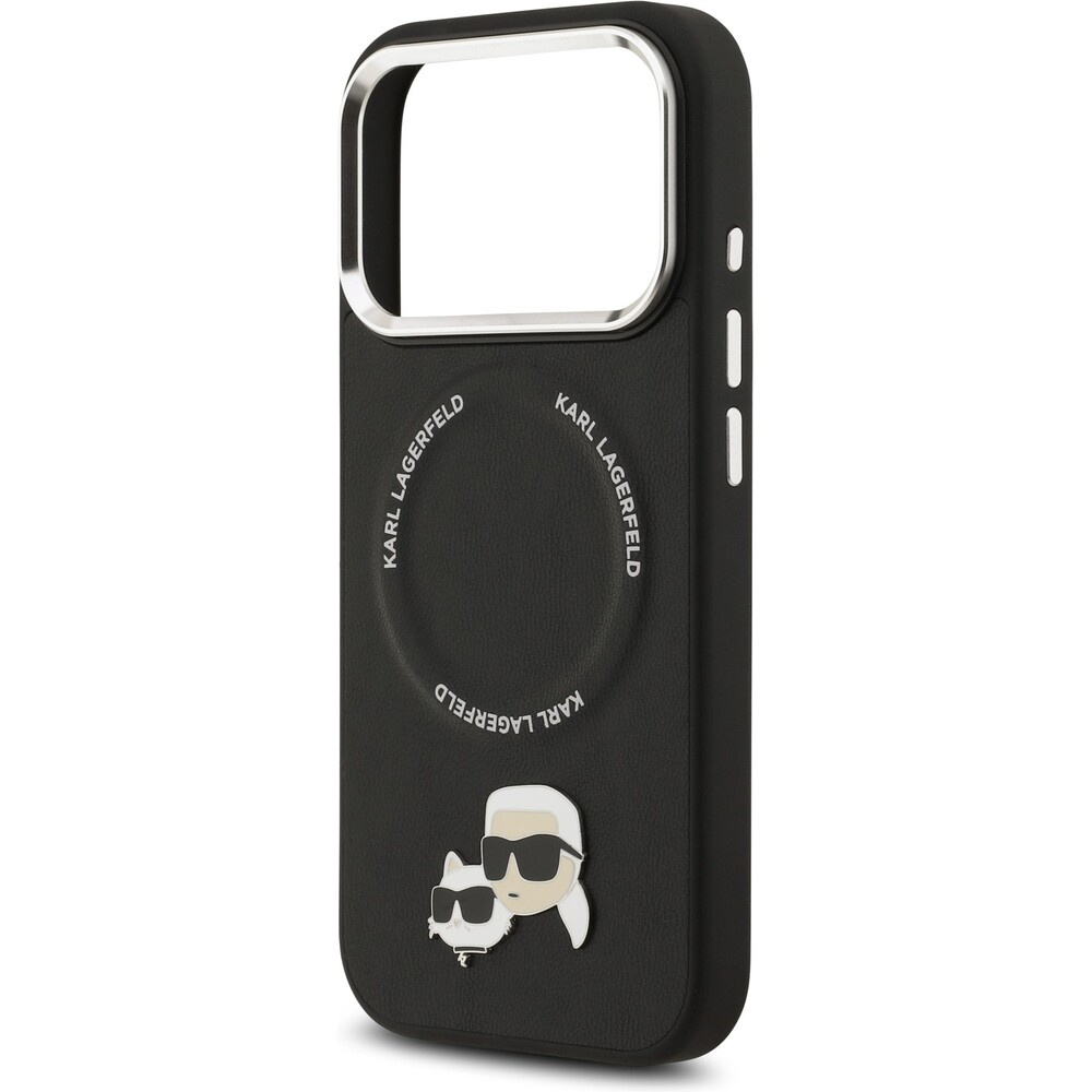 Karl Lagerfeld PU Karl and Choupette Heads Pins MagSafe kryt iPhone 17 Pro Max černý