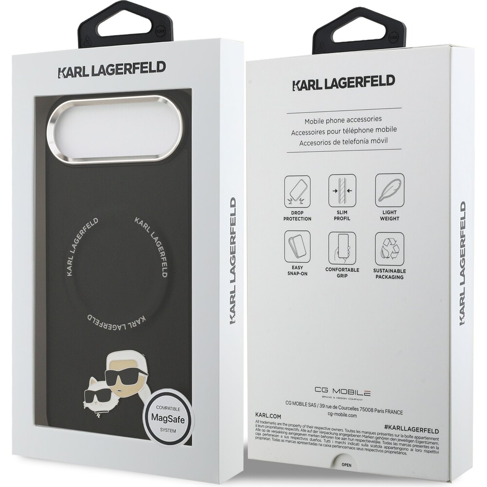 Karl Lagerfeld PU Karl and Choupette Heads Pins MagSafe kryt iPhone Air černý