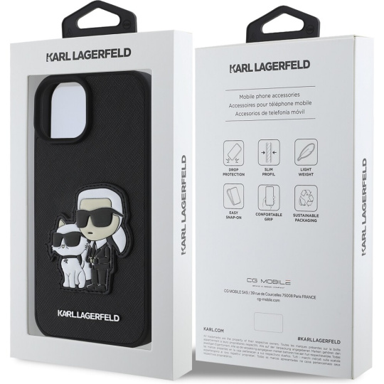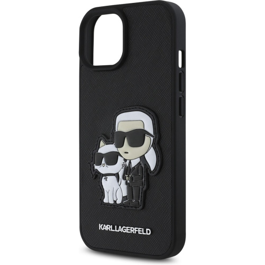 Karl Lagerfeld PU Saffiano Karl and Choupette kryt iPhone 15 černý
