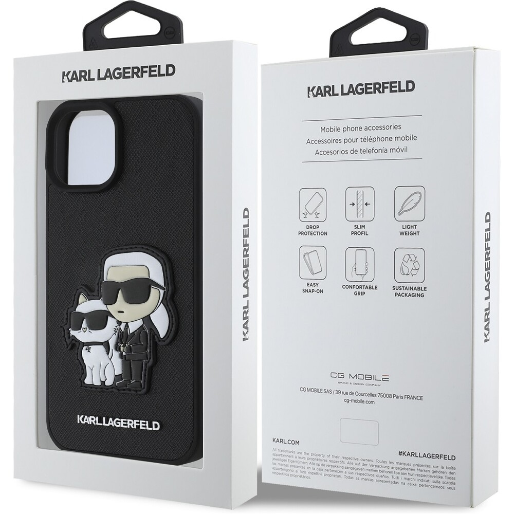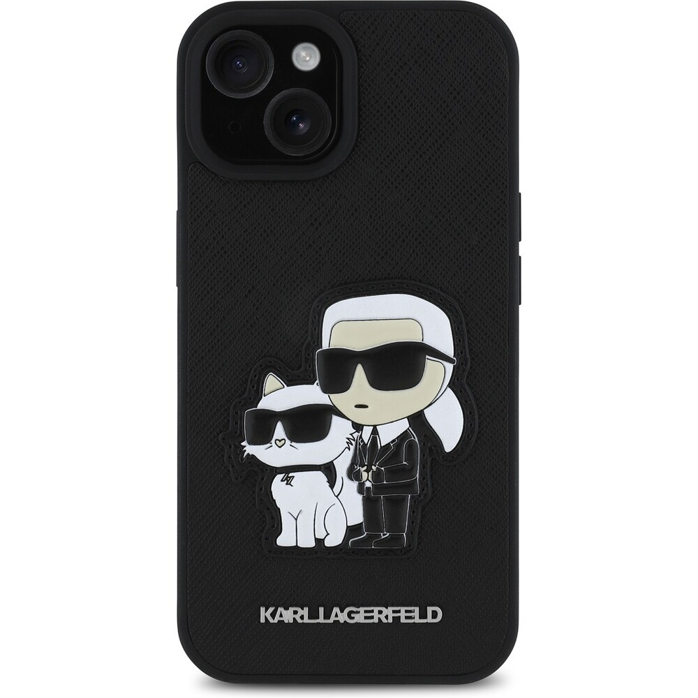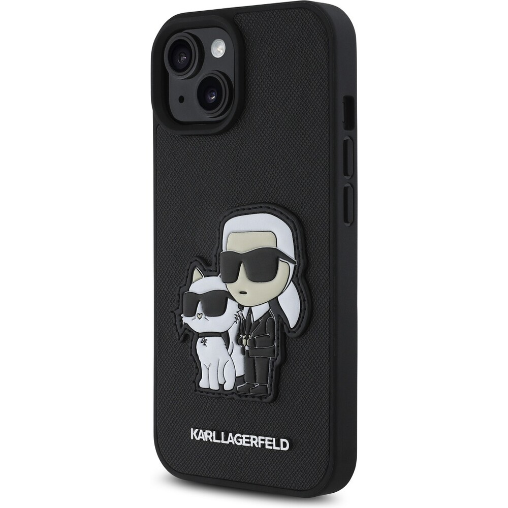 Karl Lagerfeld PU Saffiano Karl and Choupette kryt iPhone 15 černý