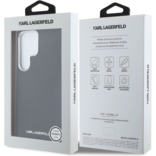Karl Lagerfeld PU Saffiano Metal Logo and Frame kryt Samsung Galaxy S25 Ultra černý