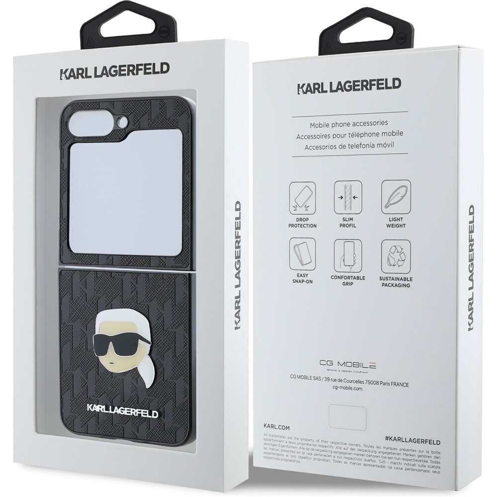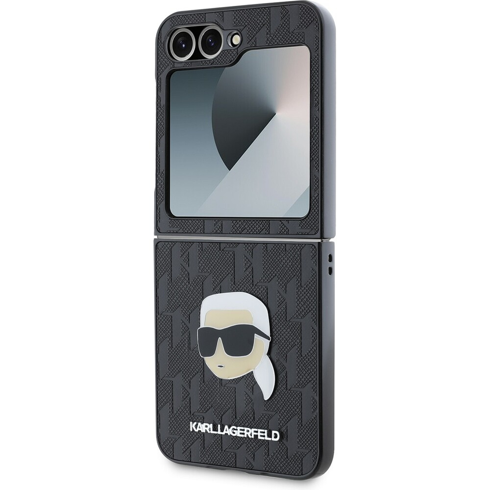 Karl Lagerfeld PU Saffiano Monogram Karl Head kryt Samsung Galaxy Z Flip 6 černý