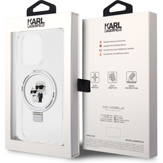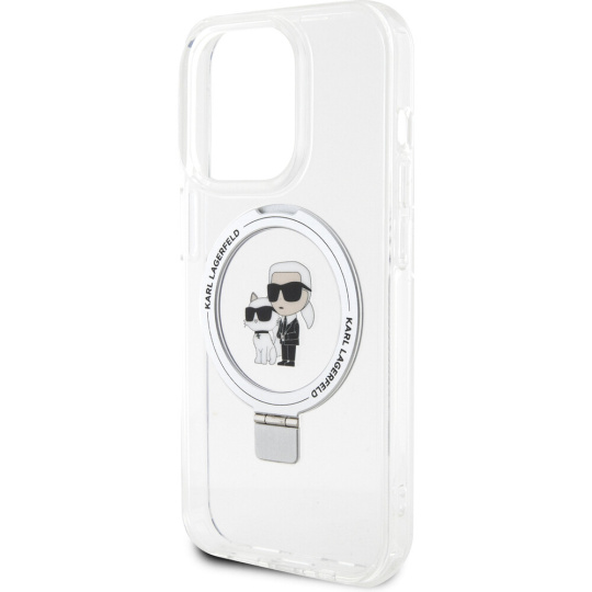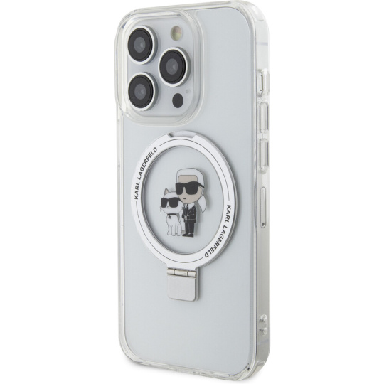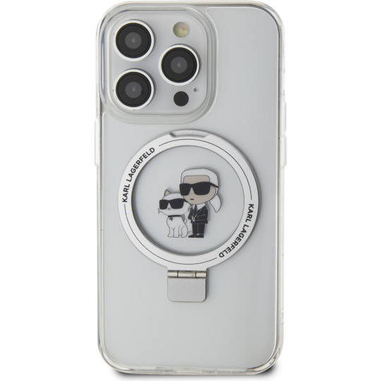 Karl Lagerfeld Ringstand Karl and Choupette MagSafe kryt iPhone 15 Pro bílý