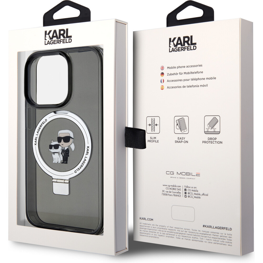 Karl Lagerfeld Ringstand Karl and Choupette MagSafe kryt iPhone 15 Pro černý