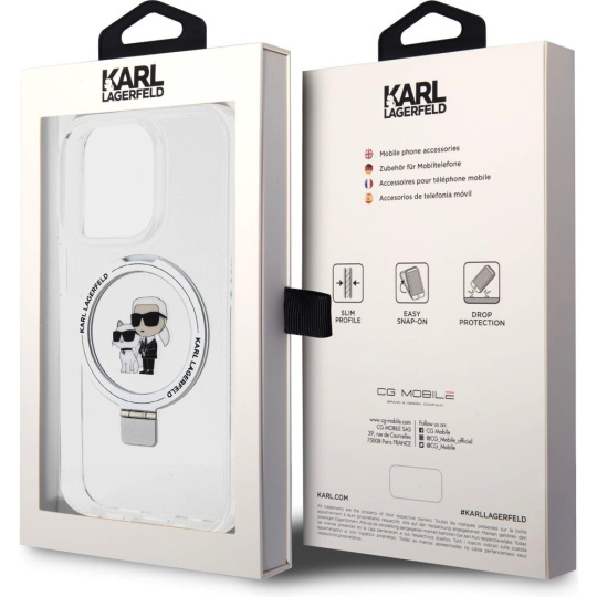 Karl Lagerfeld Ringstand Karl and Choupette MagSafe Kryt iPhone 15 Pro Max bílý