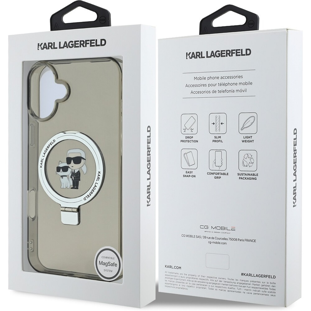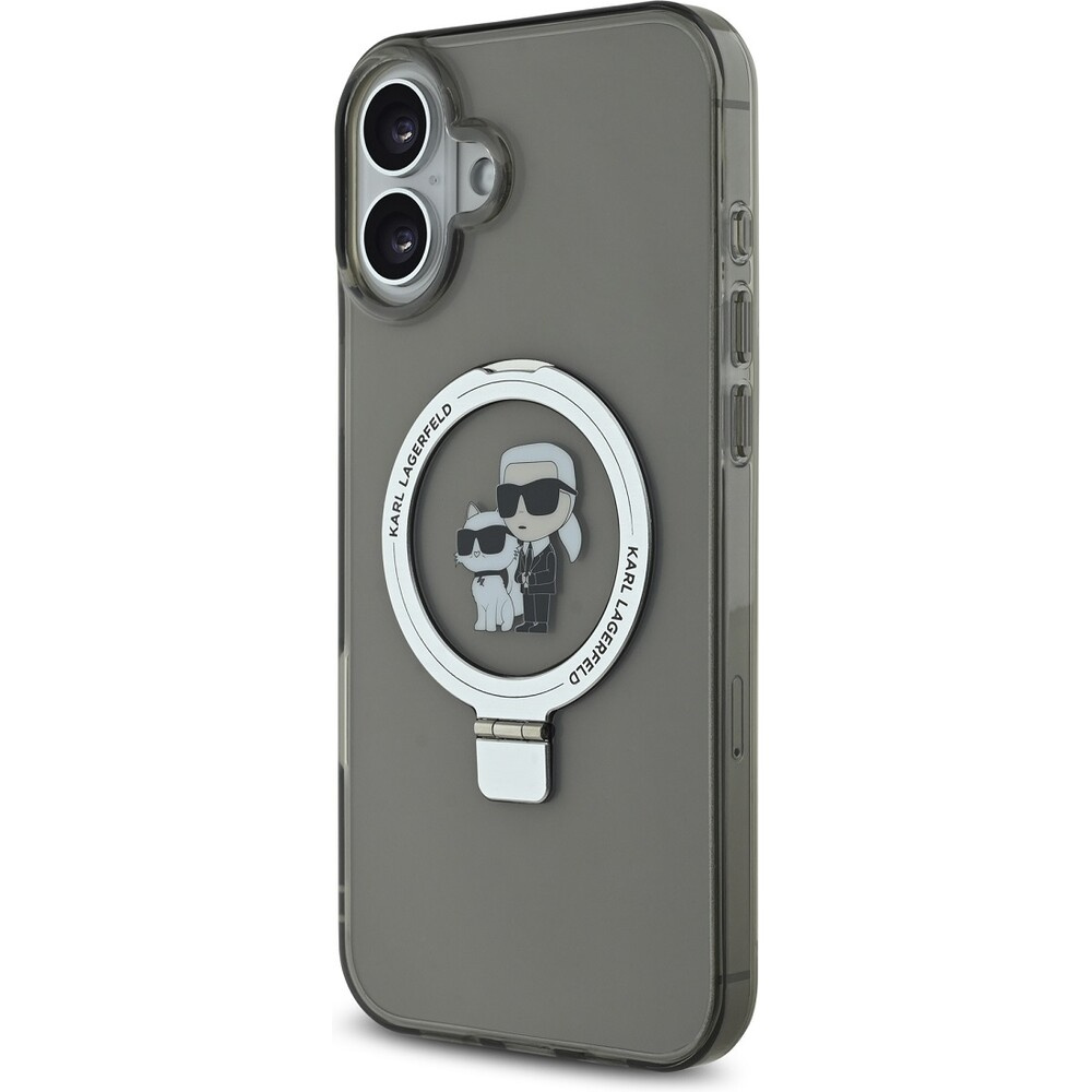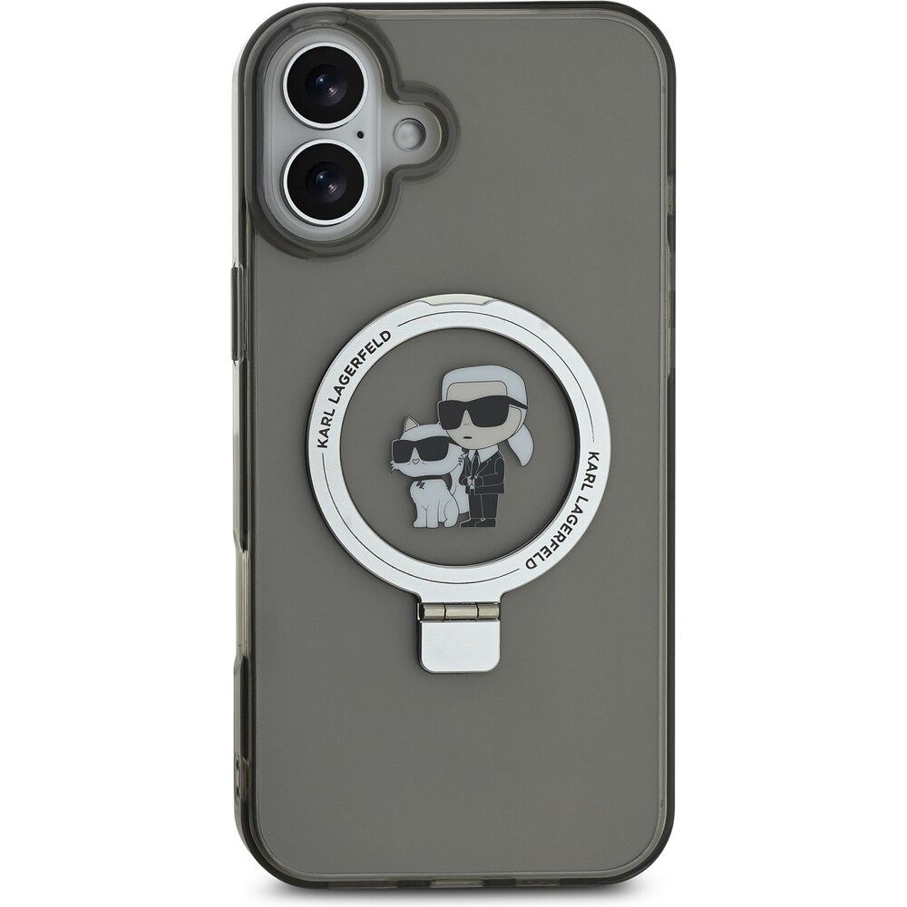 Karl Lagerfeld Ringstand Karl and Choupette MagSafe kryt pro iPhone 16 Plus černý
