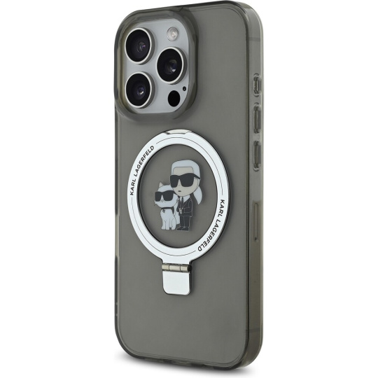 Karl Lagerfeld Ringstand Karl and Choupette MagSafe kryt pro iPhone 16 Pro černý
