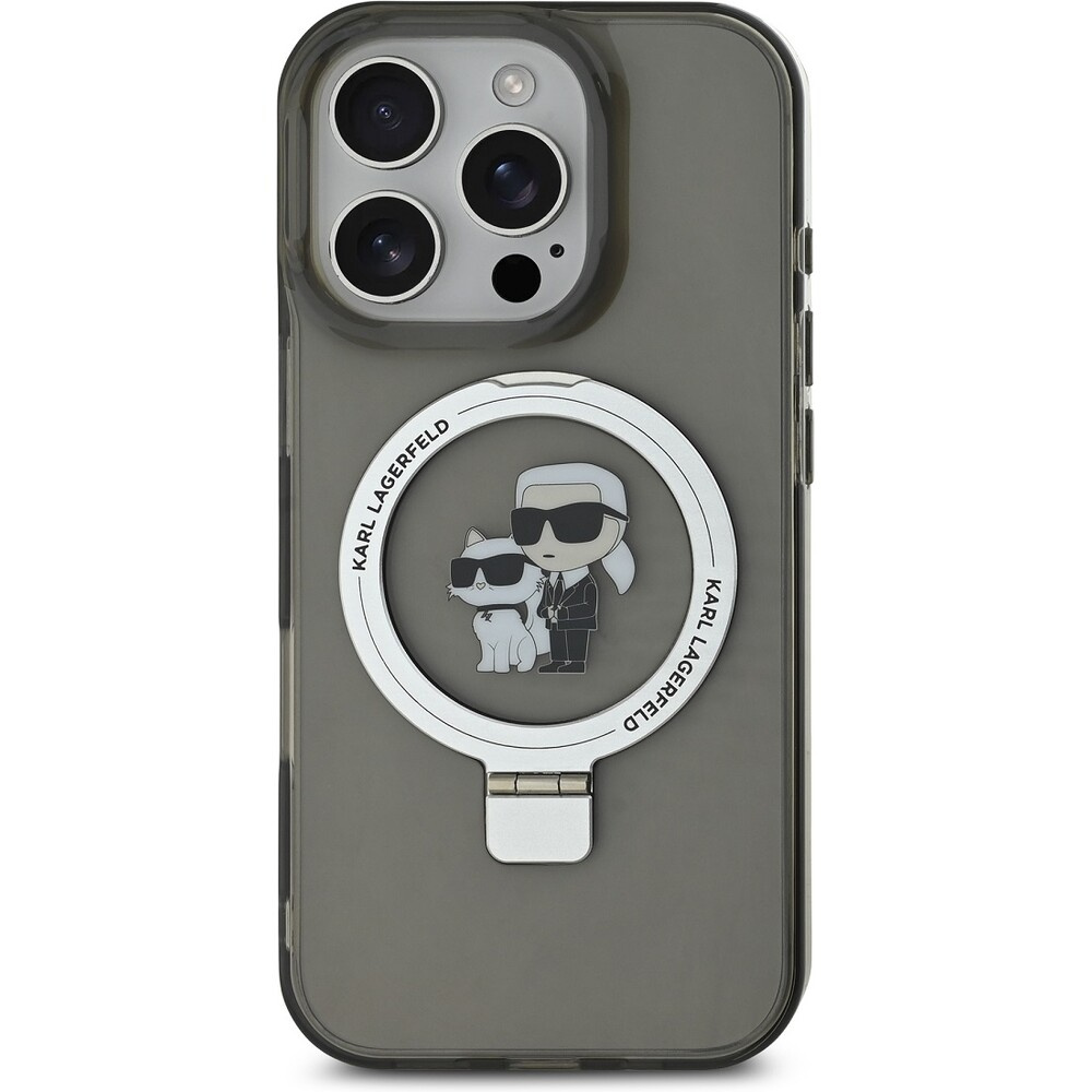 Karl Lagerfeld Ringstand Karl and Choupette MagSafe kryt pro iPhone 16 Pro Max černý