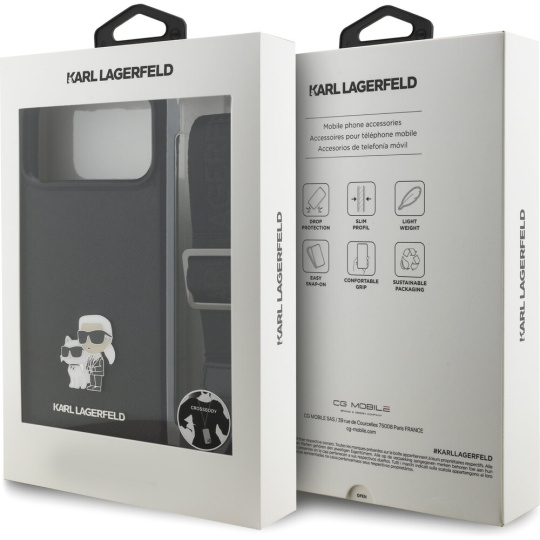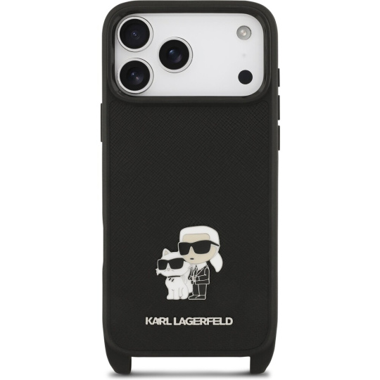 Karl Lagerfeld Saffiano Crossbody Popruh Metal Karl and Choupette kryt iPhone 17 Pro Max černý