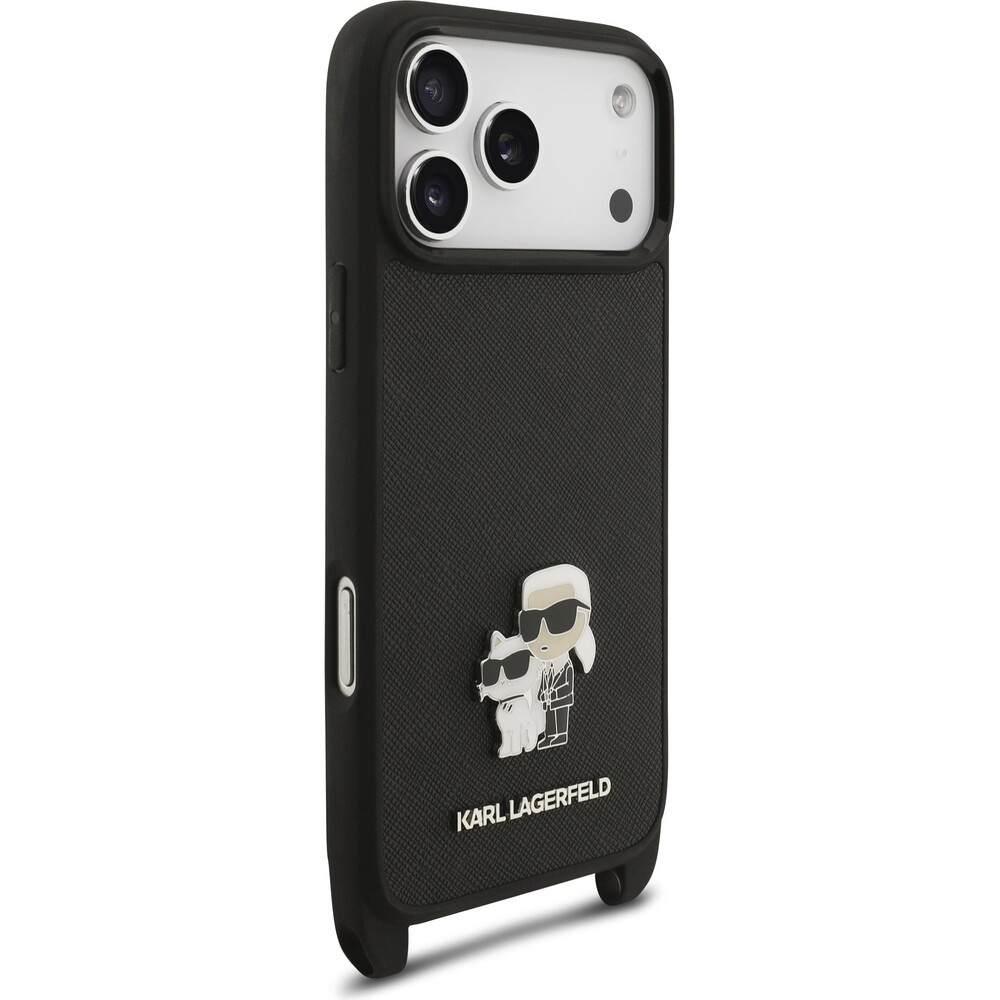 Karl Lagerfeld Saffiano Crossbody Popruh Metal Karl and Choupette kryt iPhone 17 Pro Max černý